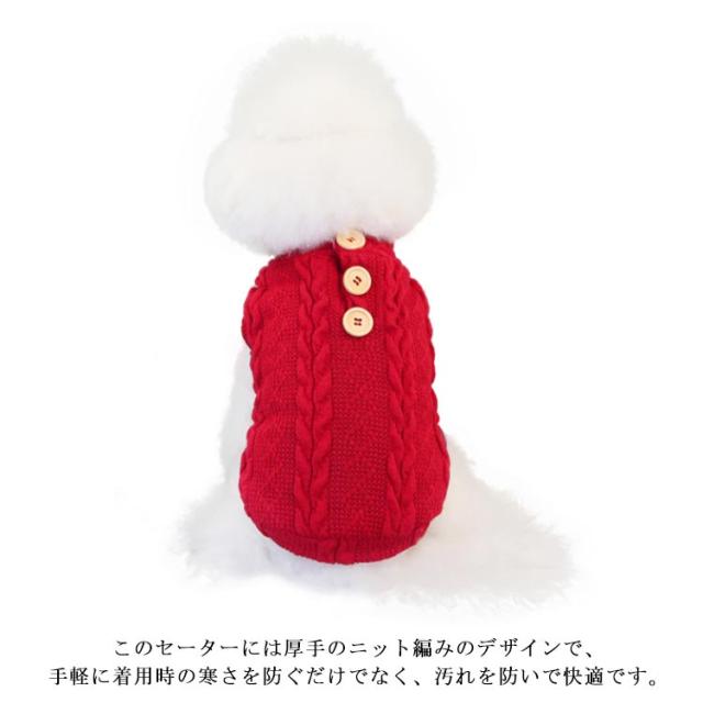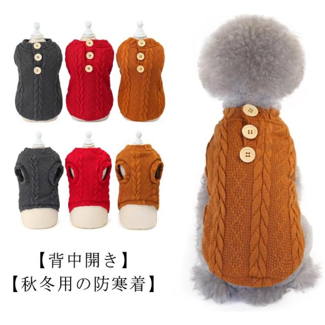 送料無料 ドッグウェア 犬服 ニット ベスト 背中開き セーター もこもこ ケーブル編み トップス 背中ボタン フリース 暖かい あったか ベスト 袖なし ジャケット パジャマ 春 秋冬物