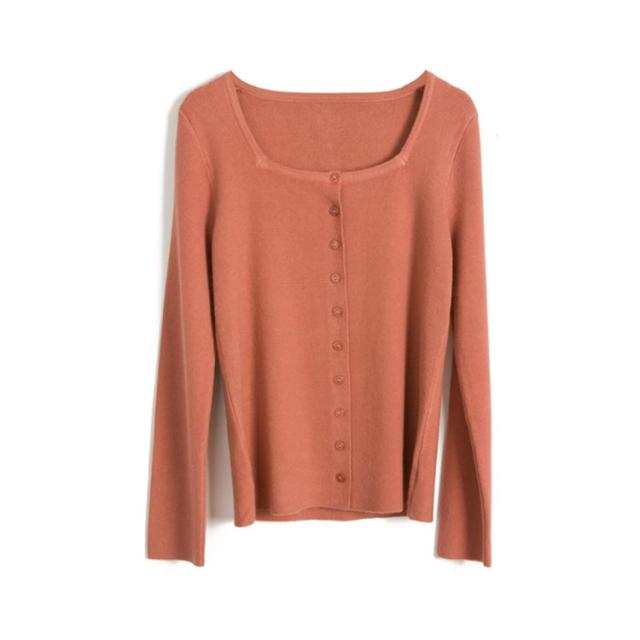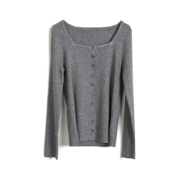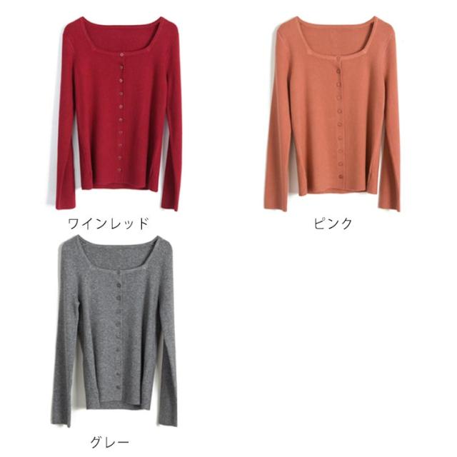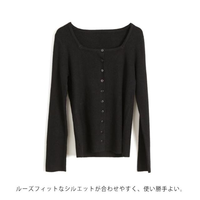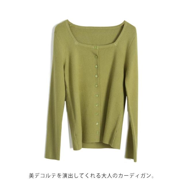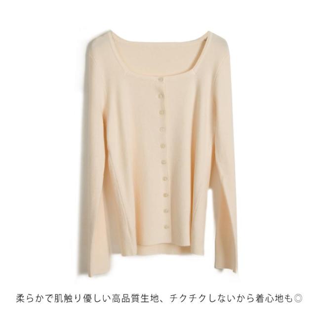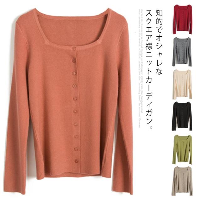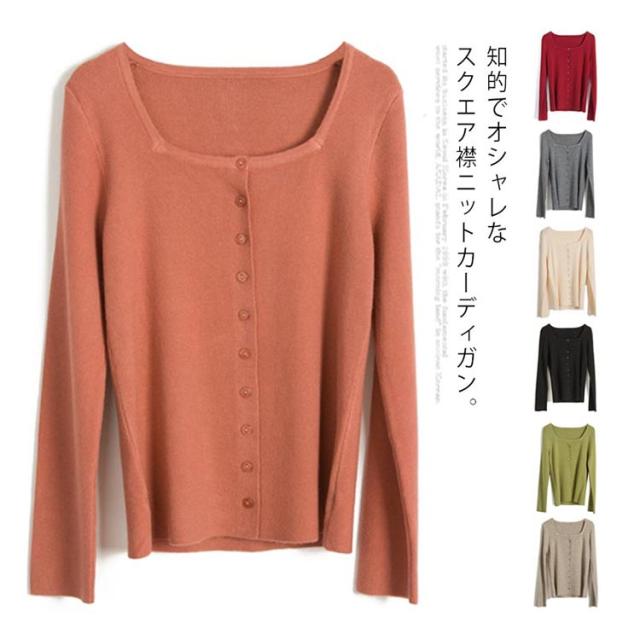 スクエア 襟 ニットカーディガン ニット トップス レディース 長袖 セーター カーディガン 羽織り オシャレ 細身 着痩せ フェミニン 春 秋 無地