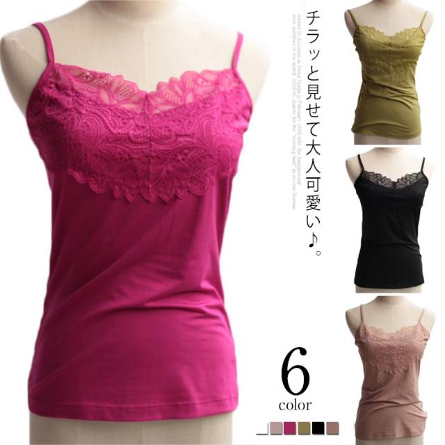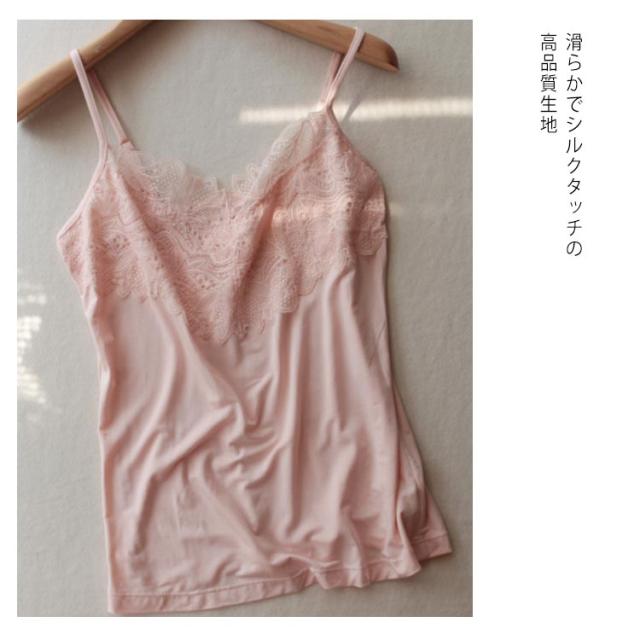 キャミソール レース インナー 肌着 ストレッチ モーダル タンクトップ ノースリーブ トップス レディース 洗える 胸元レース