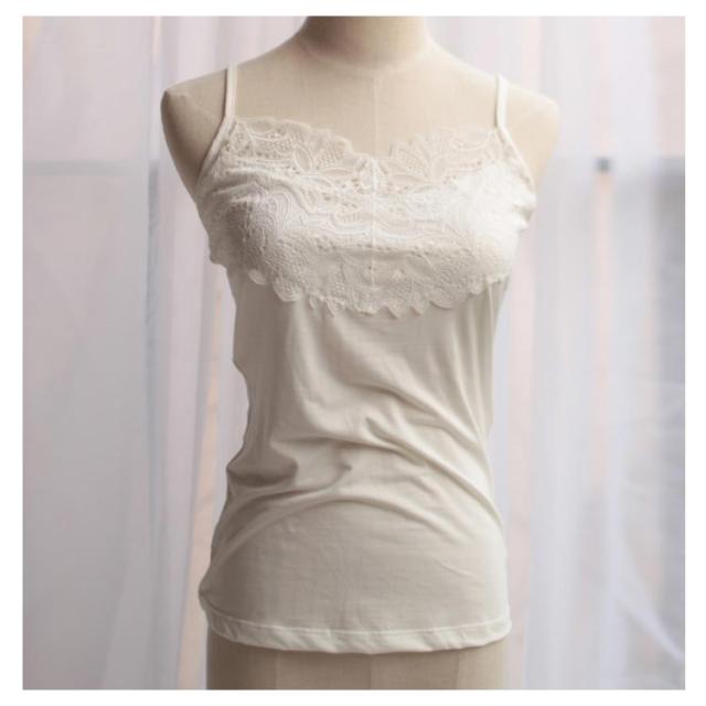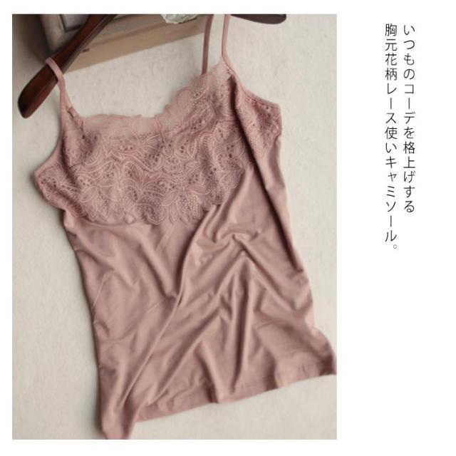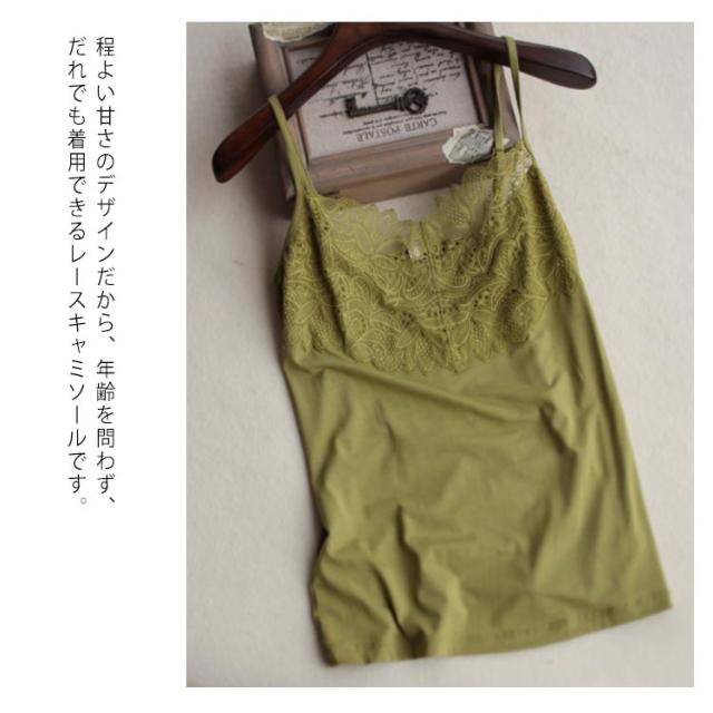 | チラッと見せて大人可愛い♪。 いつものコーデを格上げする胸元花柄レース使いキャミソール。 なめらかで柔らかい肌ざわり、着心地抜群。 シンプルでアウターのラインを響かないから、透け感のあるシャツなど薄手トップスのインナーとしても◎ 程よい甘さのデザインだから、年齢を問わず、だれでも着用できるレースキャミソールです。 | |