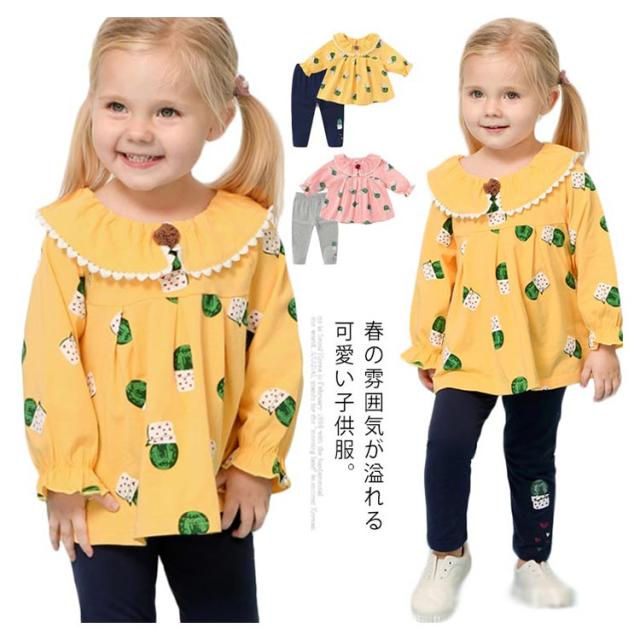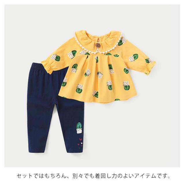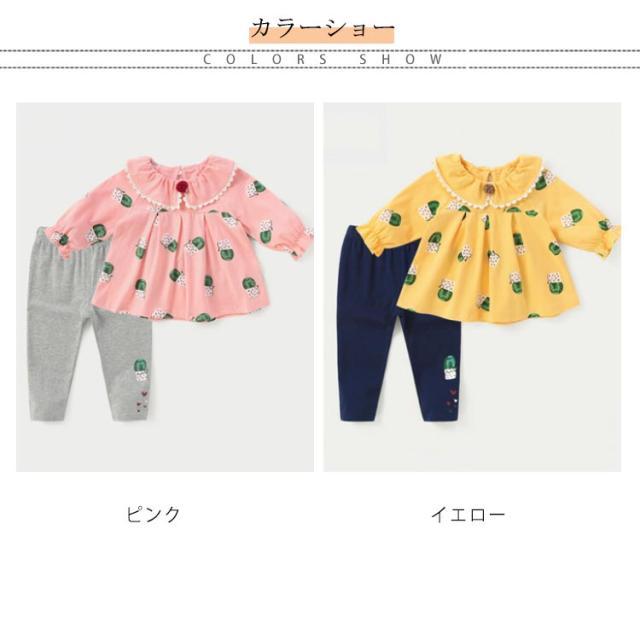 2点セット 女の子 ベビー 花柄 ブラウス トップス 長袖 ロングパンツ レギンス スウェット 春服 可愛い フレア ラグラン袖
