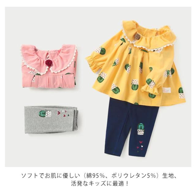 | 春の雰囲気が溢れる可愛い子供服。 鮮やかな色とサボテンが日常のオシャレを彩る! ソフトでお肌に優しい(綿95%、ポリウレタン5%)生地、活発なキッズに最適! スカラップレースが女の子の可愛らしさをプラス。 セットではもちろん、別々でも着回し力のよいアイテムです。 | |