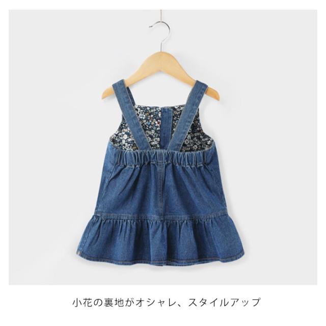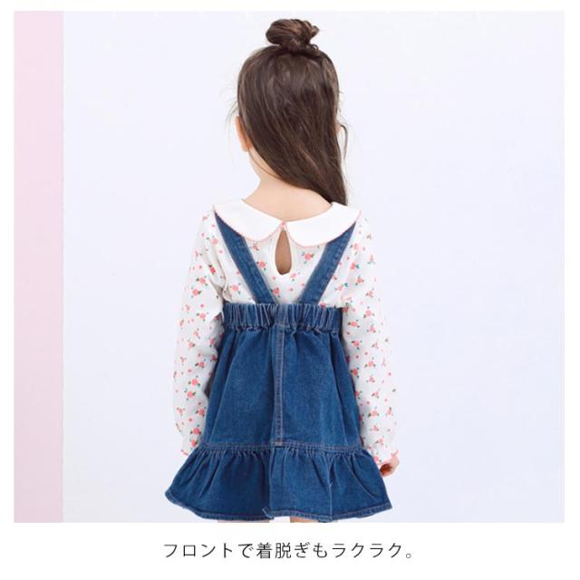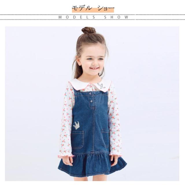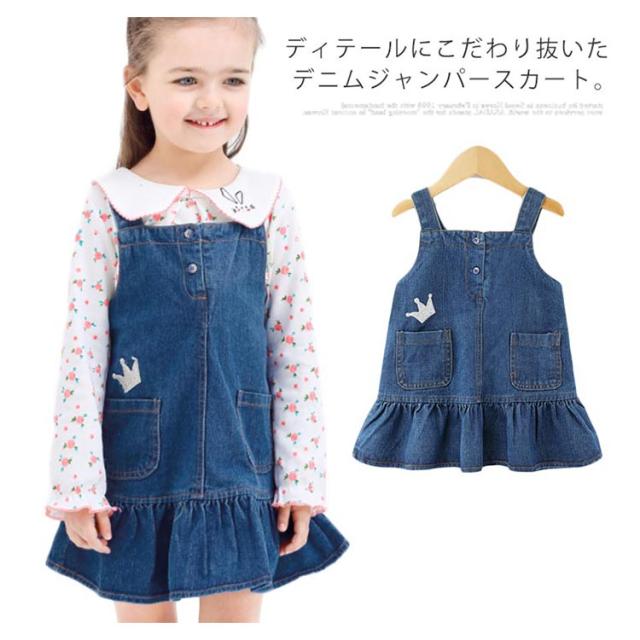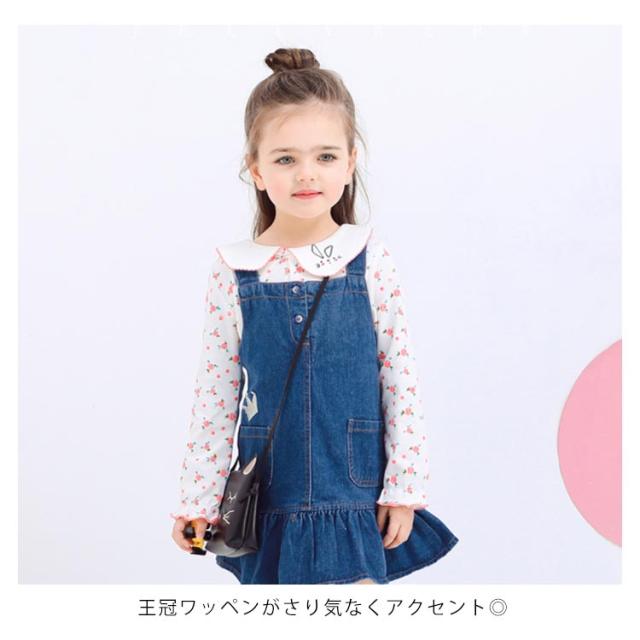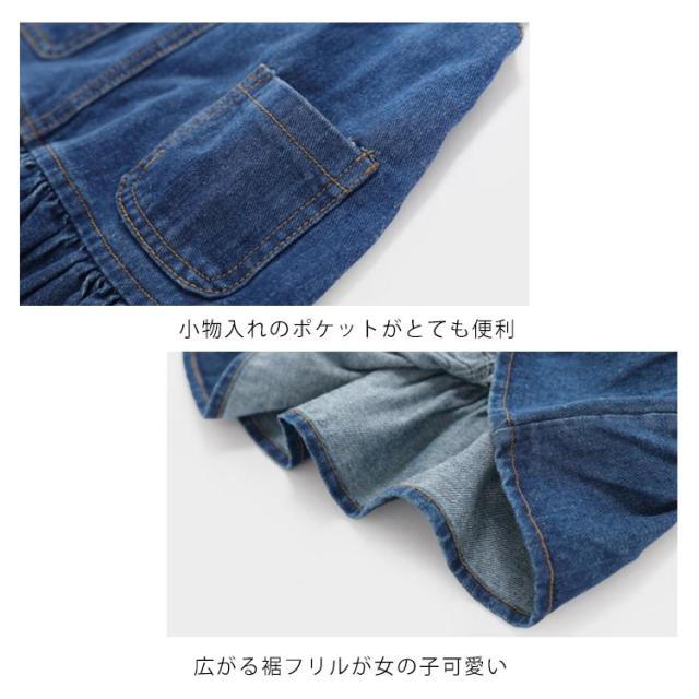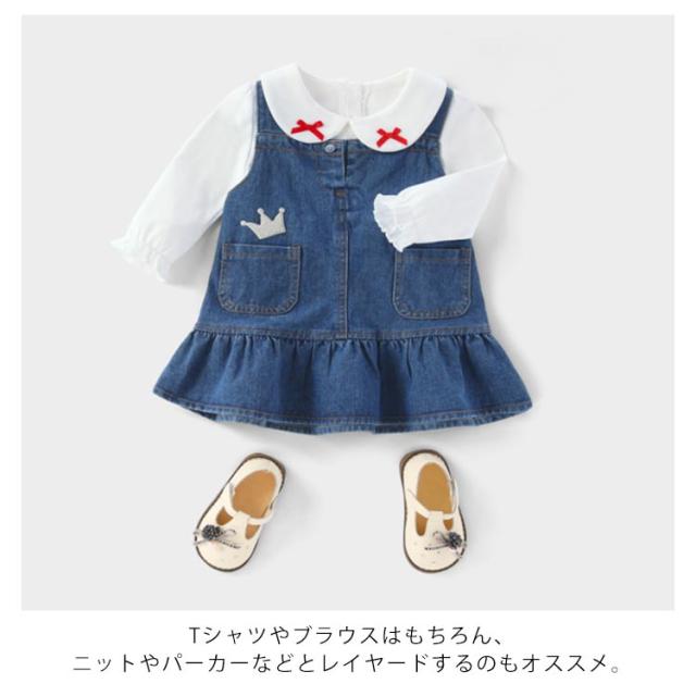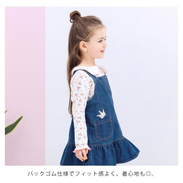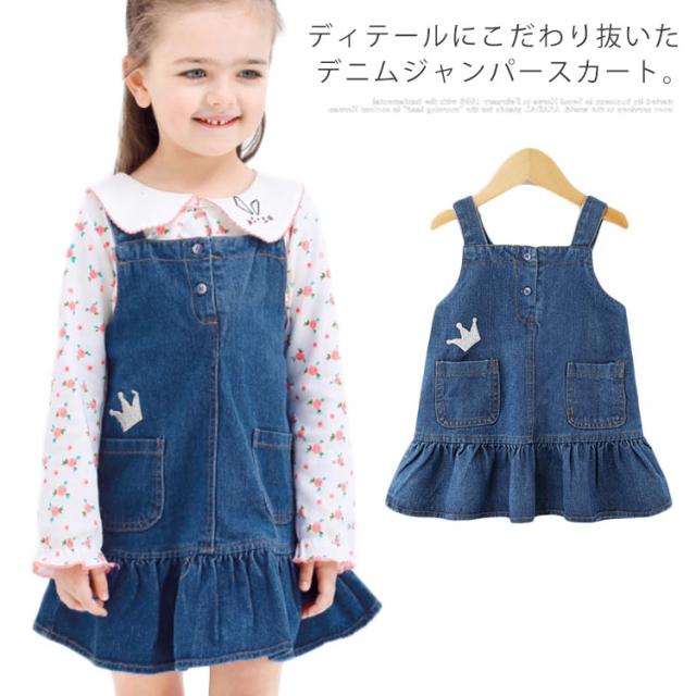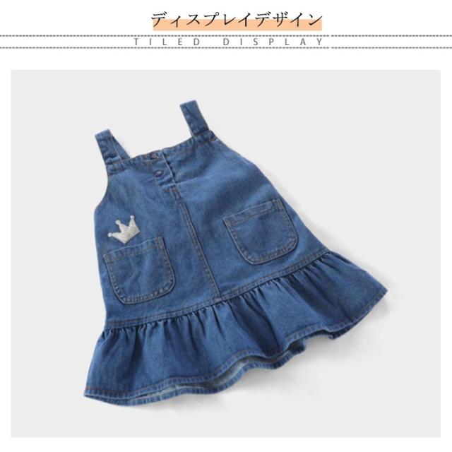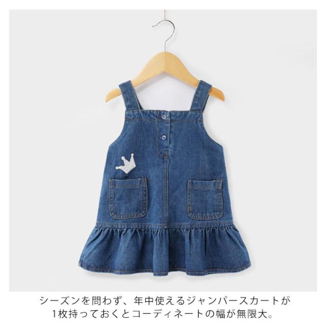 キッズ ワンピース ジャンパースカート 子供服 女の子 サロペット スカート デニムスカート デニム フリル 王冠 可愛い 73 80 90 100 110 120 130 ポケット付き ガールズ