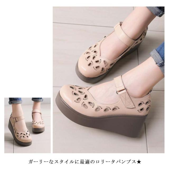 パンプス レディース ロリータシューズ ロリータパンプス PUレザー フェイクレザー アンクルベルト 厚底 フラットソール シューズ 靴 可愛い ガーリー 春新作