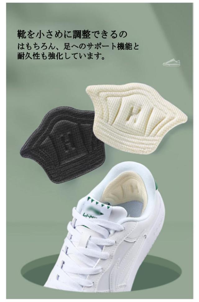 | 男女兼用タイプで、お家に常備することをお薦めのかかとクッション。 靴を小さめに調整できるのはもちろん、足へのサポート機能と耐久性も強化しています。 柔らかなクッション素材が靴とかかとのブレを軽減し、歩行時の衝撃を和らげます。 粘着シートを剥がして、靴のかかと部分に貼り付けるだけで簡単に装着できます。 ご自身のサイズに合わせてカットすることもできます。 | |