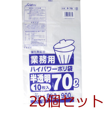 業務用ごみ袋 ハイパワーポリ袋 半透明 70L 0.017×