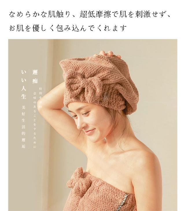 | 吸水性、柔軟性に優れたヘアキャップです ふわふわのヘアードライタオルは髪をやさしく守りながらぐんぐん水を吸ってくれて、素早く乾きます なめらかな肌触り、超低摩擦で肌を刺激せず、お肌を優しく包み込んでくれます 頭の回りは伸縮性抜群で、締め付け過ぎずゆるすぎないシャーリングが程よくフィットしてくれます 可愛いリボン付きなのでやさしく髪を包みます お風呂上りや、スイミング、温泉、ジムなどいろいろな場面で大活躍 | |