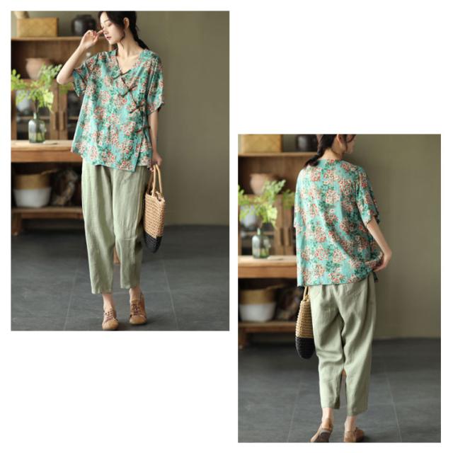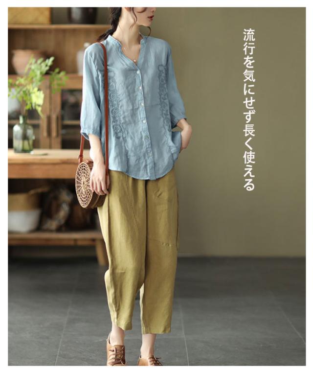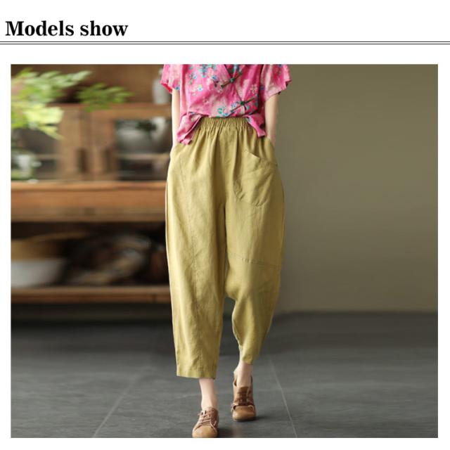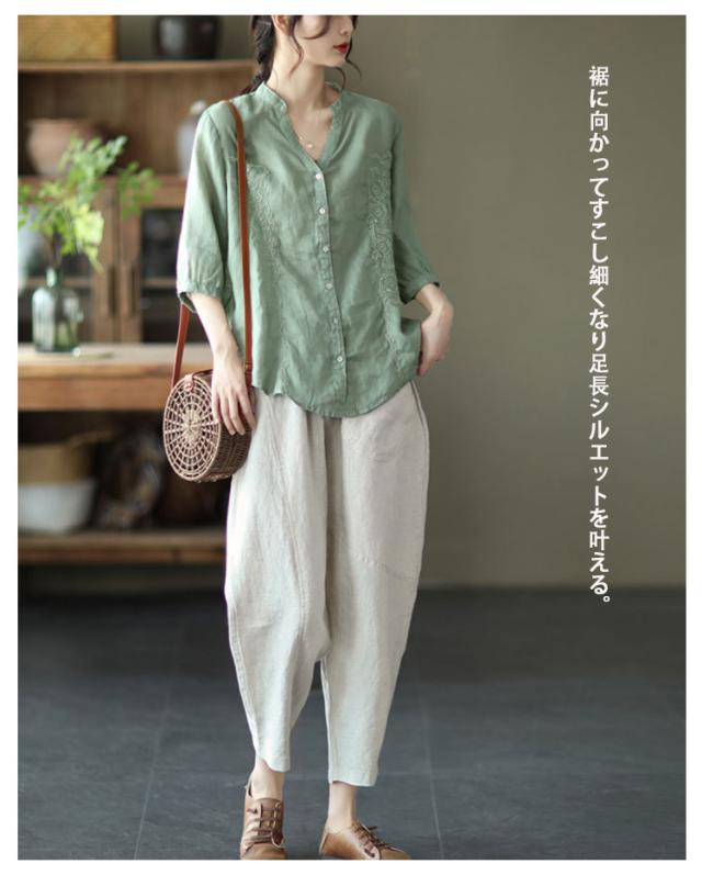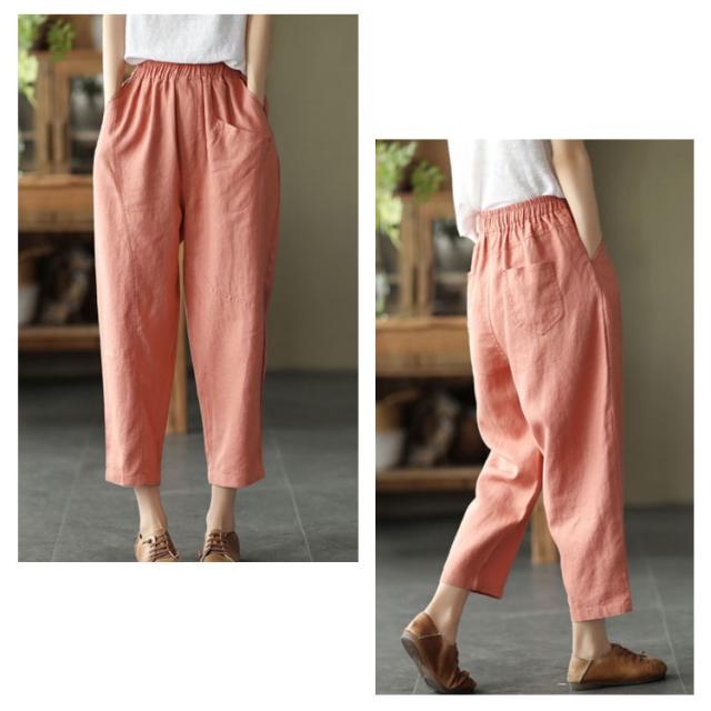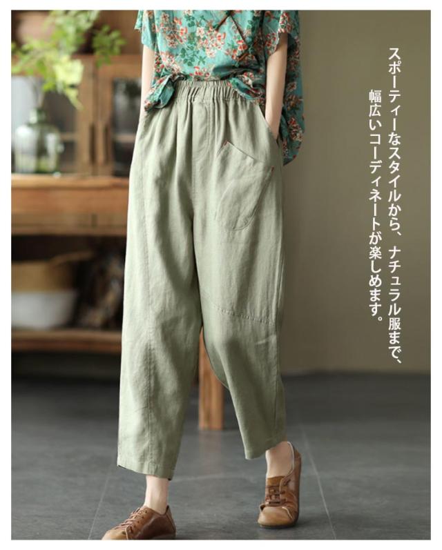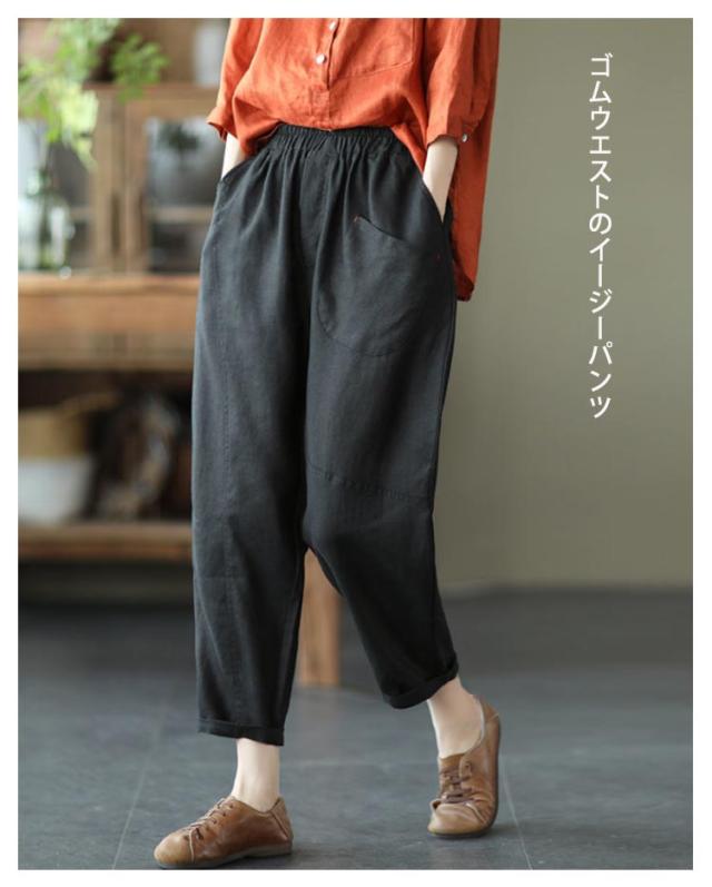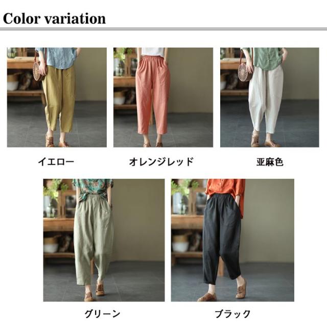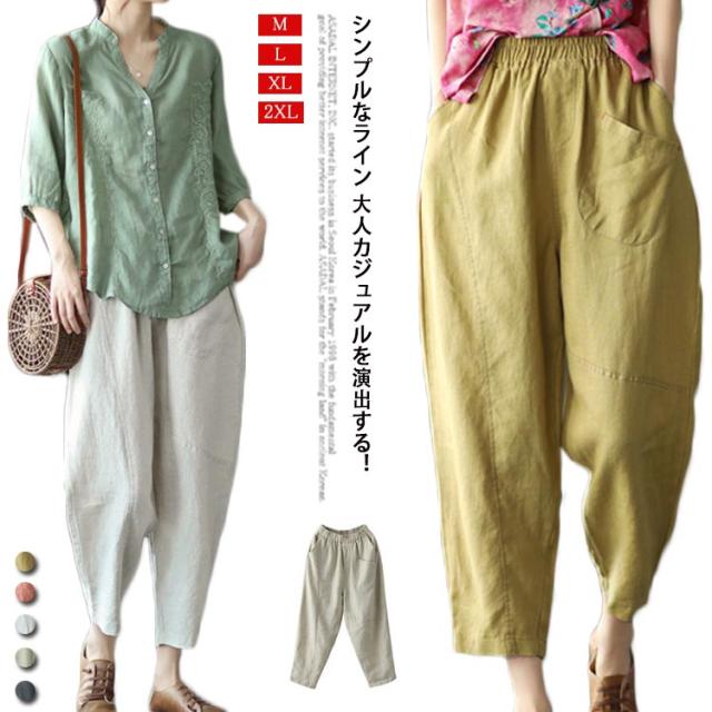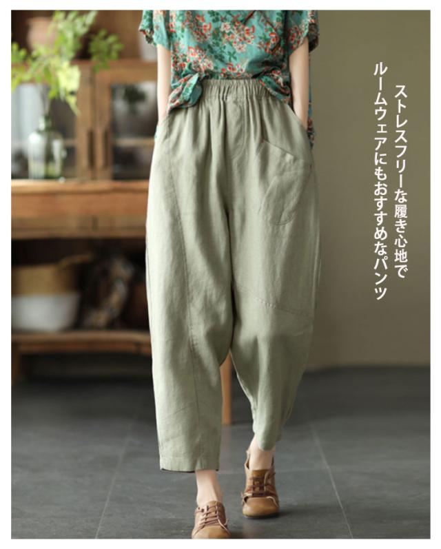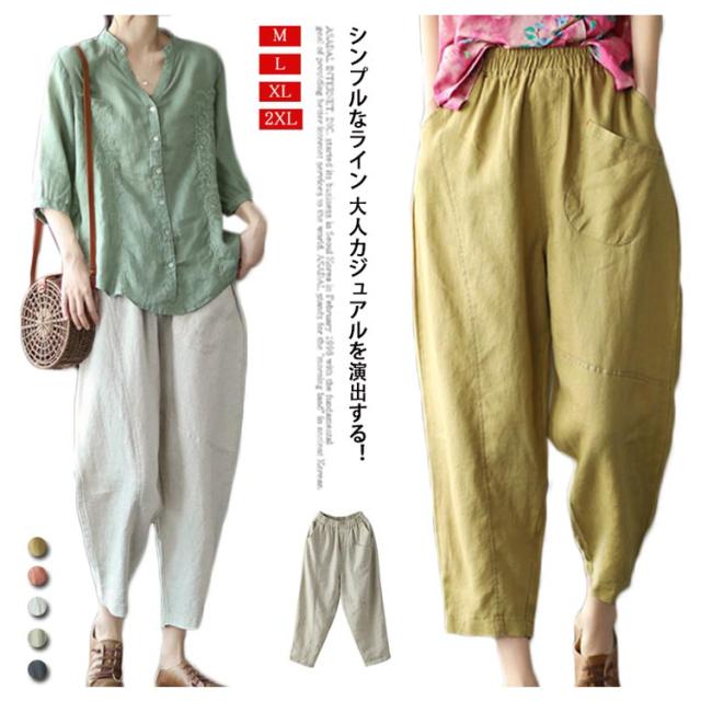 全5色×4サイズ!ガウチョパンツ サルエルパンツ カジュアルパンツ クロップドパンツ ワイドパンツ レディース 9分丈 クロップドパンツ アンクルパンツ 秋 送料無料 綿麻 リネン 綿 ズボン 春 麻 リネンイージーパンツ 大きサイズ 体型カバー ゆったり シンプル 無地