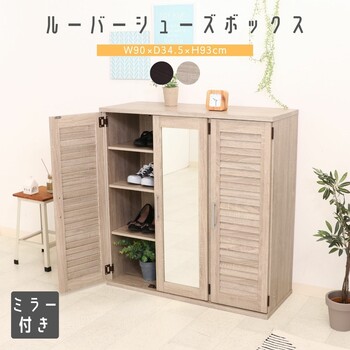 ルーバーミラー付きシューズボックス 90幅 2色展開