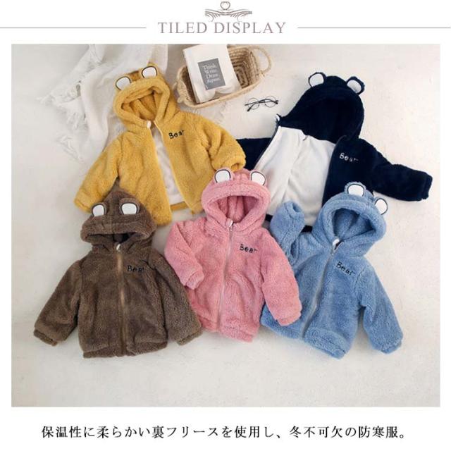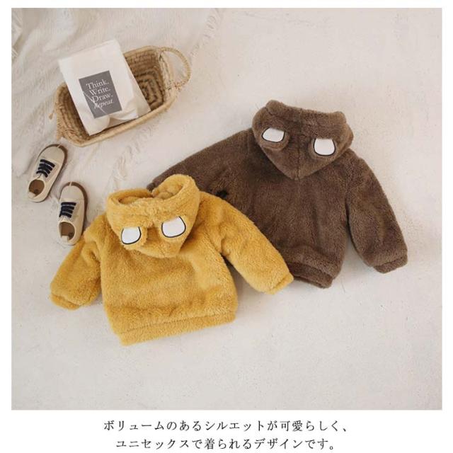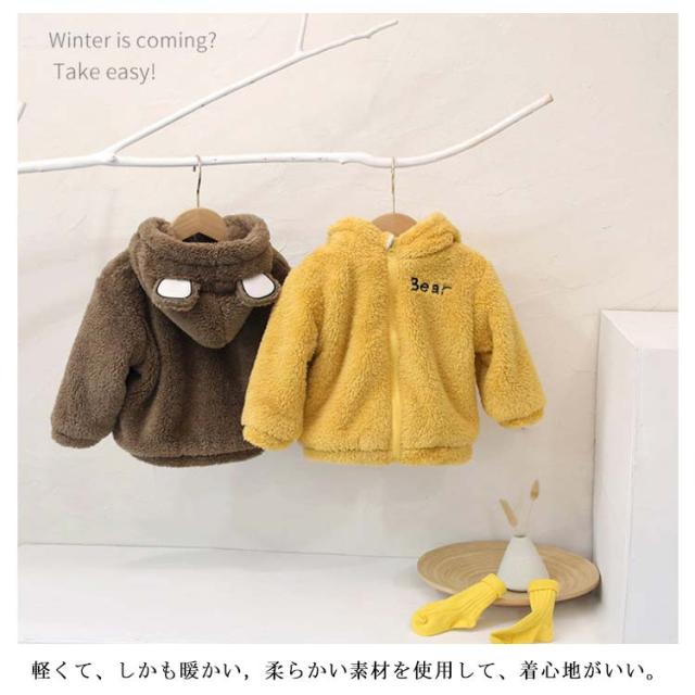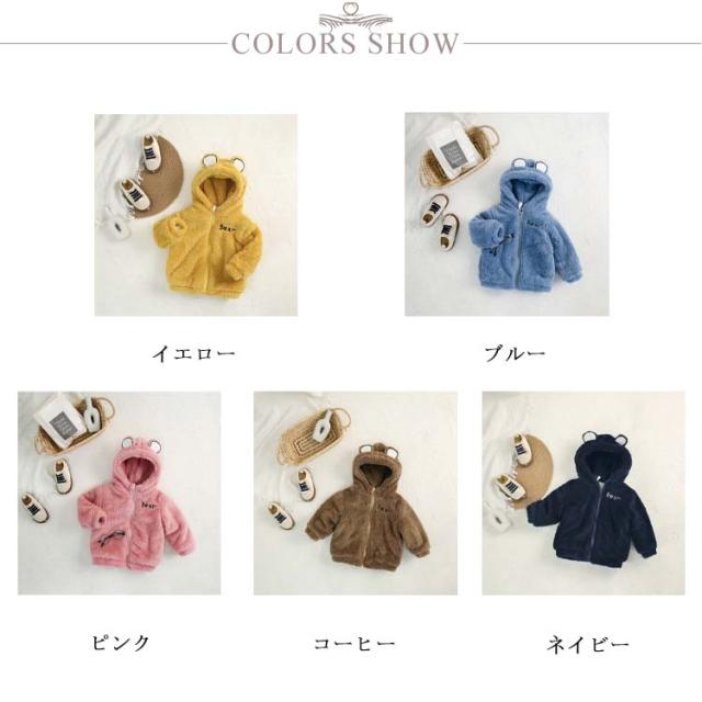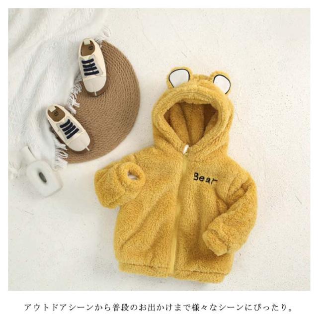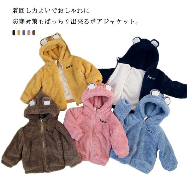 くま耳 ボアジャケット 子供服 フリース コート ブルゾン キッズ ベビー 防寒 アウター 裏起毛 ふわふわ 女の子 男の子 もこもこ 暖かい 無地 シンプル 保温 長袖 あったか 秋冬 90 100 110 120 130cm 子ども こども服
