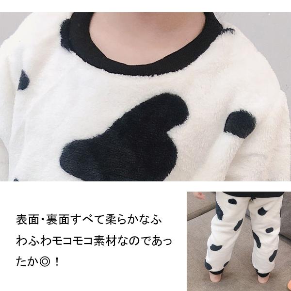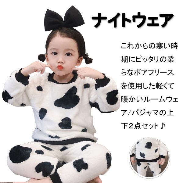 ナイトウェア キッズ ルームウェア セットアップ パジャマ 子供服 キッズ 女の子 男の子 長袖 ボア 厚手 保温 防寒 裏起毛 暖かい 寝間着 モコモコ 可愛い 防寒着 裏ボア 乳牛柄 秋 冬 80 90 100 110 120 130 140