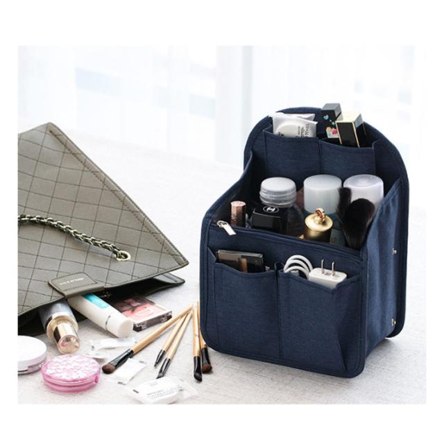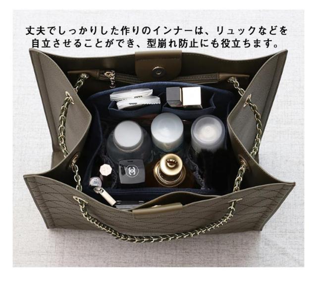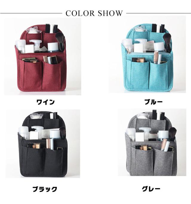 | 大容量!荷物をスッキリ取り出しやすく収納できるバッグインナー 多数の小物ポケット&幅広マチ部分があるので、多収納できるバッグインバッグ ペットボトルなども縦に収納できるので、取り出しやすく収納できます。 丈夫でしっかりした作りのインナーは、リュックなどを自立させることができ、型崩れ防止にも役立ちます。 荷物をさっと綺麗にまとめられるので、お出かけ旅行上手になること間違いなし♪ | |