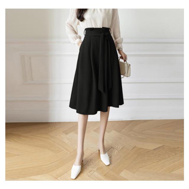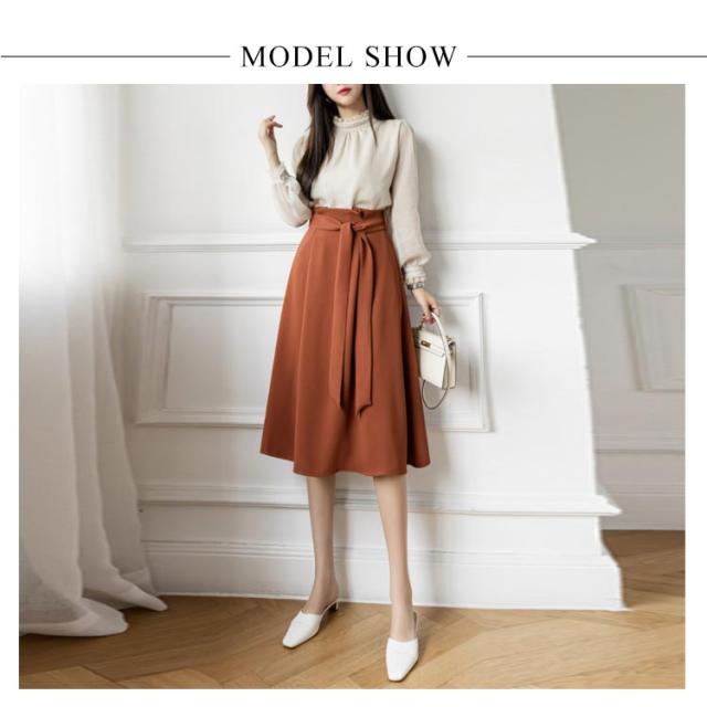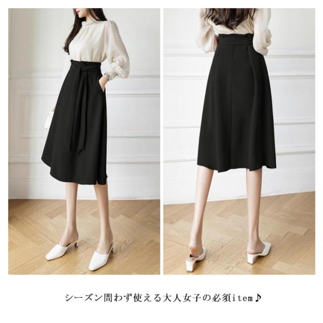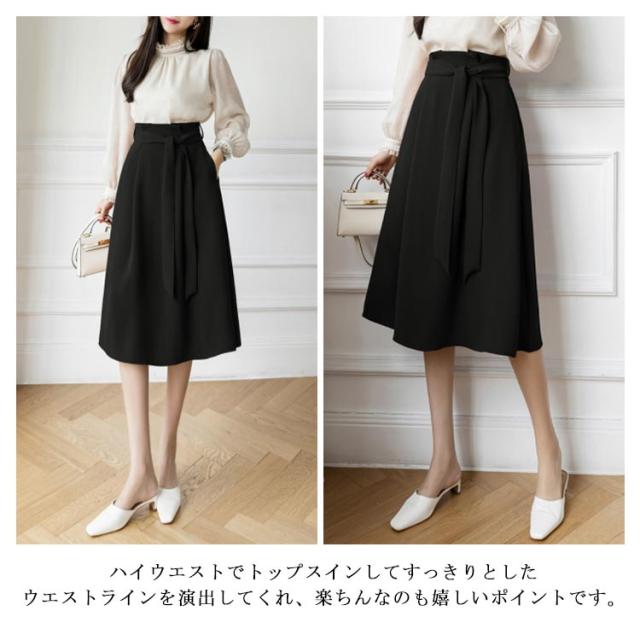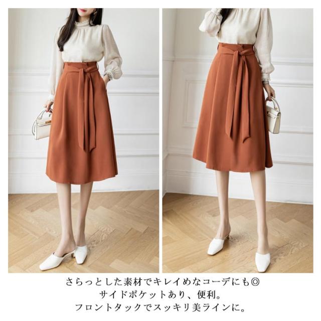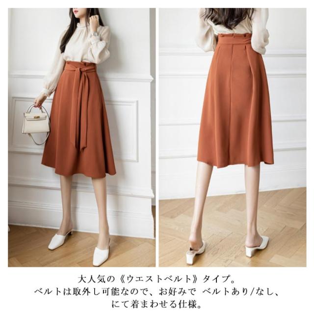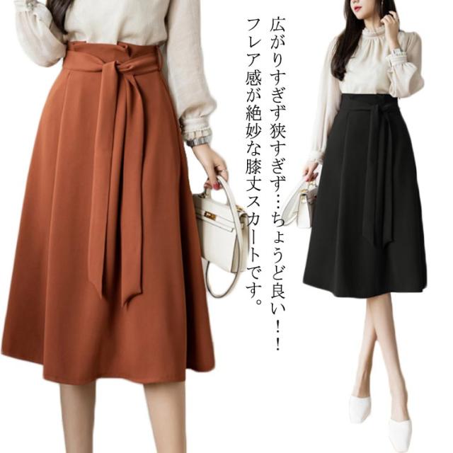 スカート レディース フレアスカート 送料無料 ミモレ丈 ひざ丈 膝丈 ロング フレア 春 春夏 秋 オフィス ハイウエスト 大きいサイズ ウエストベルト Aライン 無地