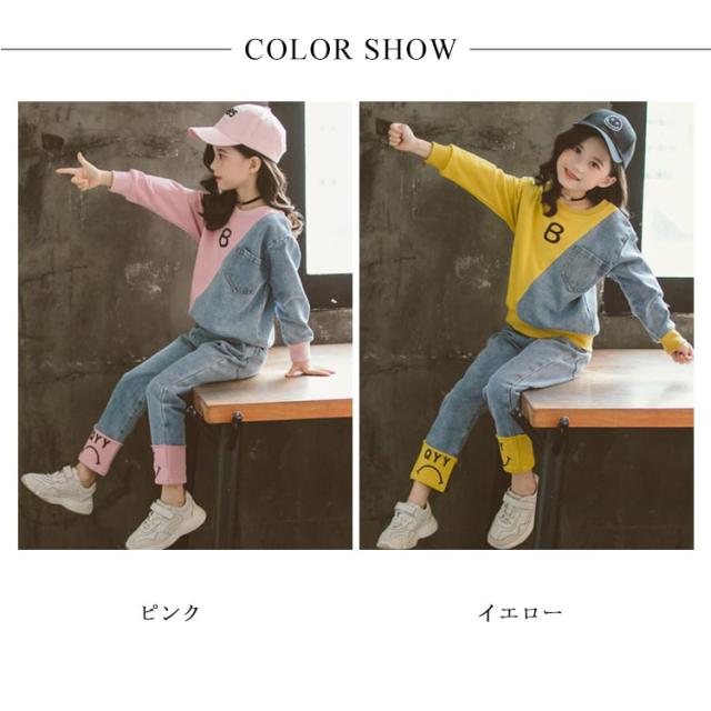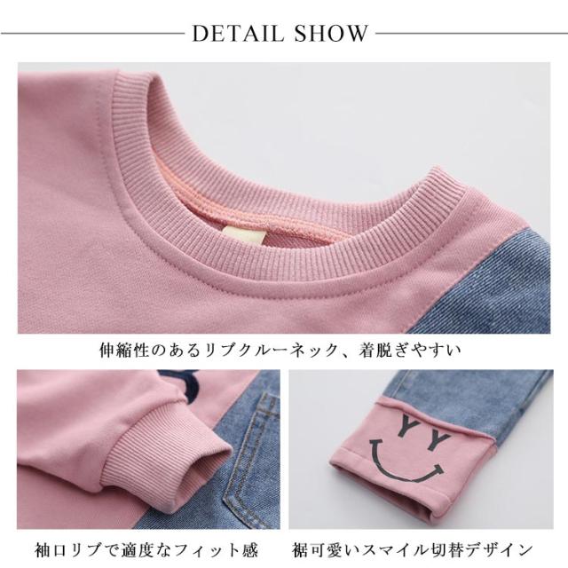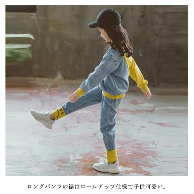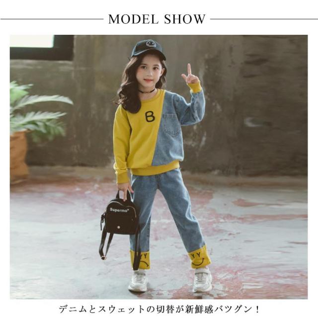 キッズ 異素材切替 デニム トレーナー デニムパンツ スウェット セットアップ ジャージ バイカラー 子供服 女の子 110 120 130 140 150 160 男の子 スポーツ パーカー