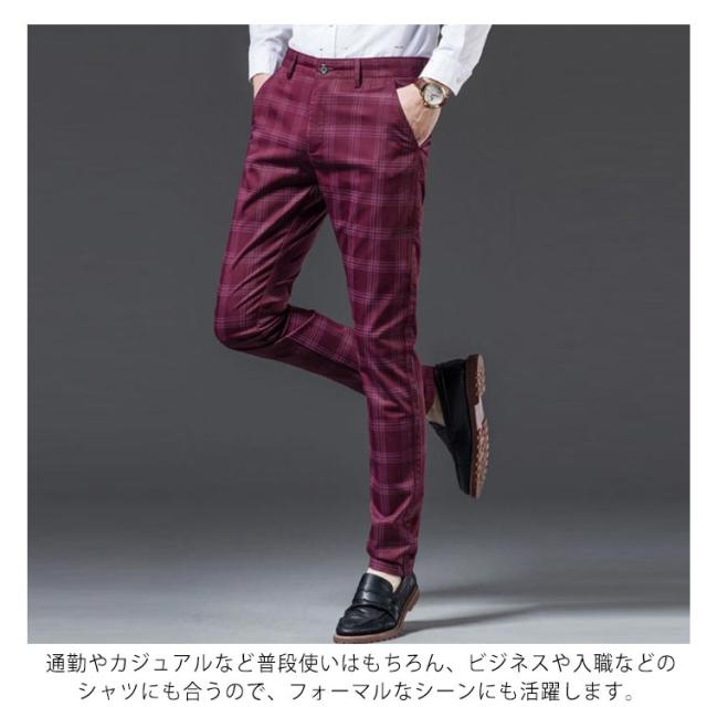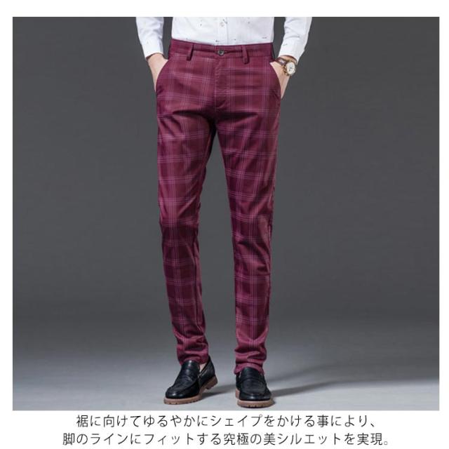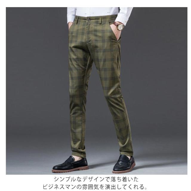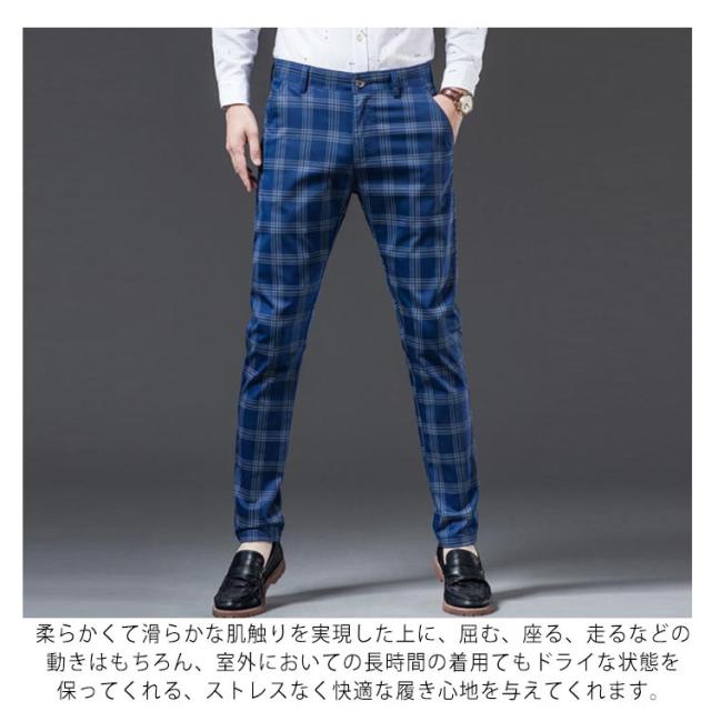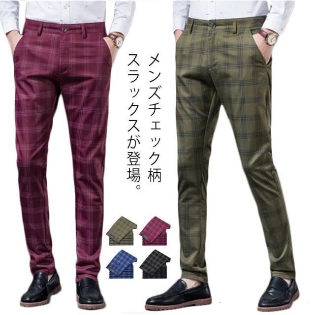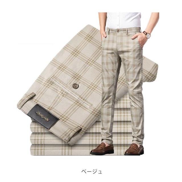 スラックス メンズ スリム 春夏 夏 スラックパンツ ビジネススラックス スリムパンツ ストレッチパンツ 紳士パ チェック柄 ゴルフウエア ビジネスパンツ ストレッチパンツ 紳士パンツ チェックパンツ