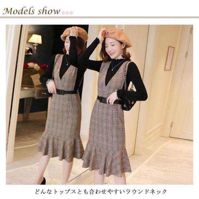 | 重ね着しやすいチェック柄ノースリーブワンピース どんなトップスとも合わせやすいラウンドネック グレンチェック柄でクラシカルな気分を出してくれる シンプルなリブニットとも相性バツグン Vネックの設計ですっきりとした印象を与える | |