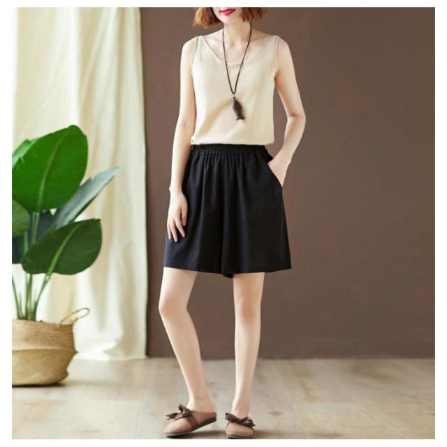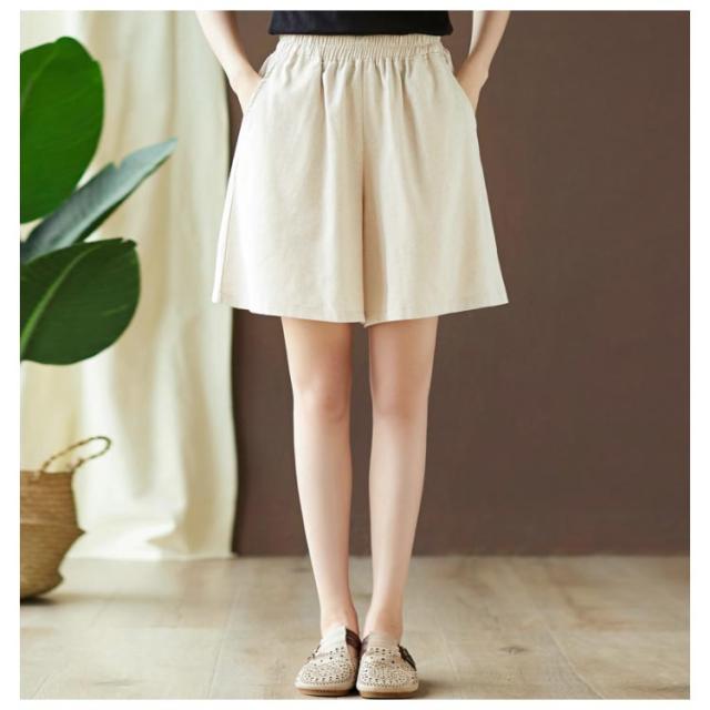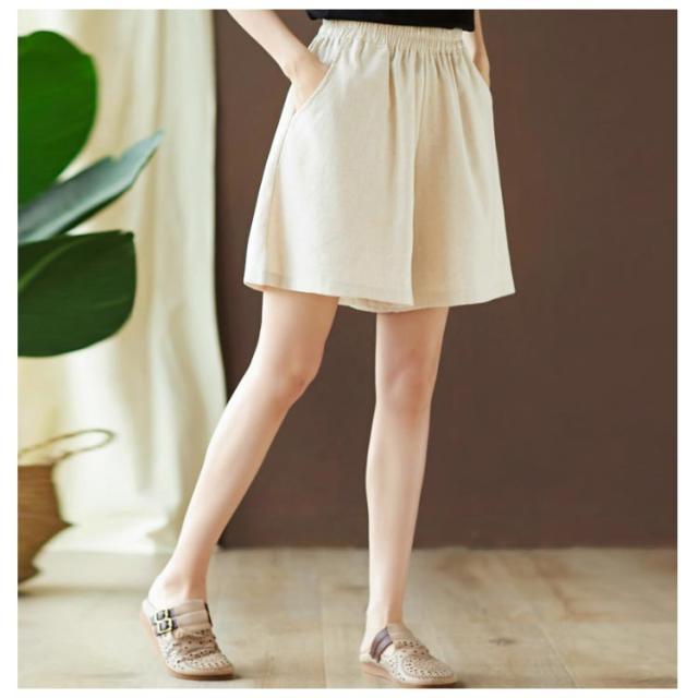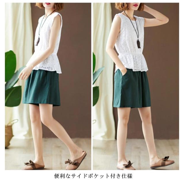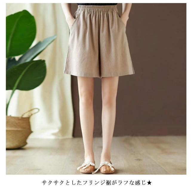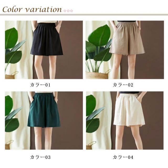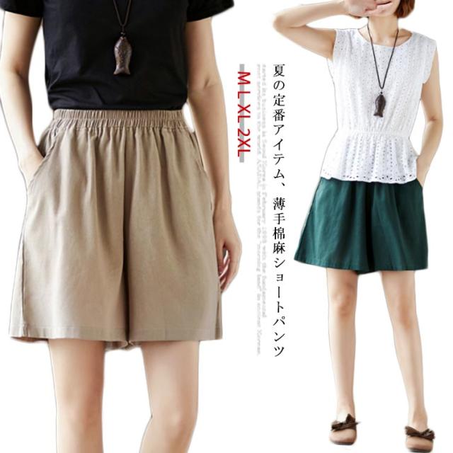 棉麻パンツ レディース 棉麻 棉 麻 リネンパンツ リネン ワイドパンツ ハーフパンツ ショートパンツ ゆったり ゆるパンツ ポケット付き ウエストゴム 薄手 ボトムス 春 夏 春新作