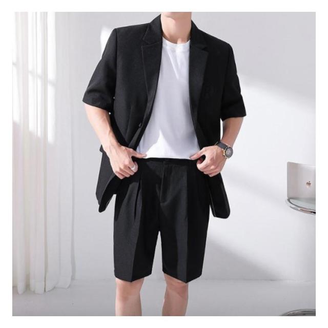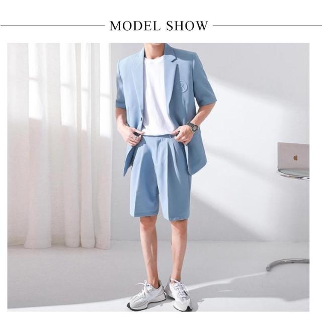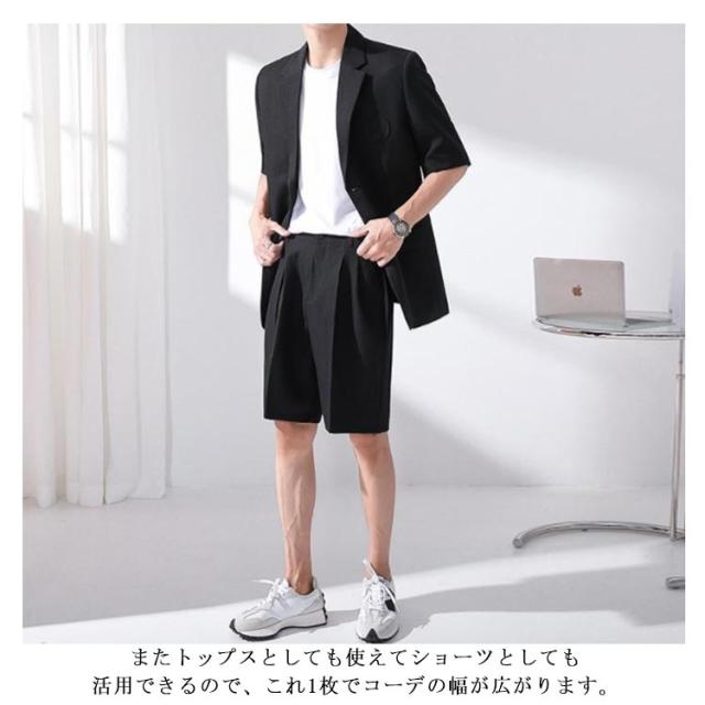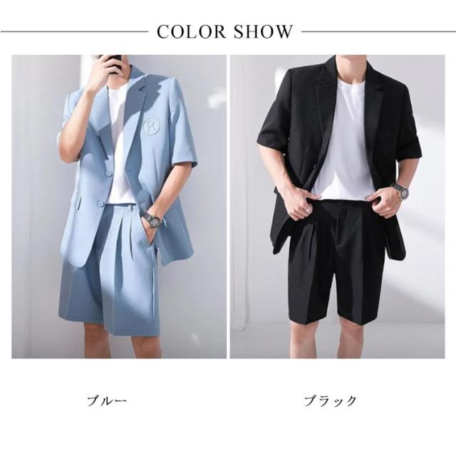 サマージャケット セットアップ メンズ 半袖 サマースーツ 春 夏 おしゃれ テーラードジャケット ハーフパンツ シンプル 韓国ファション パーティー S-3XL