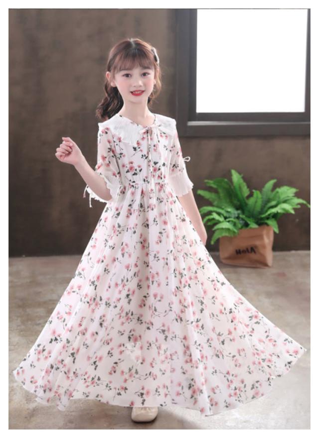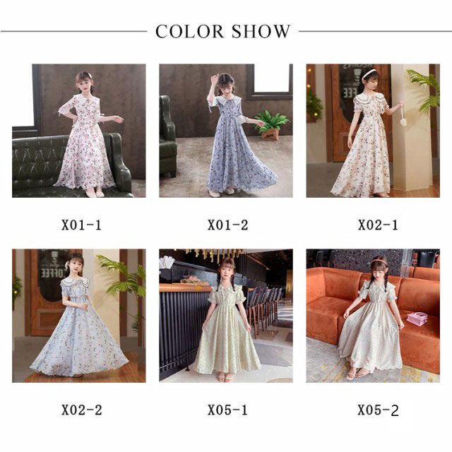 マキシワンピース シフォンワンピース 女の子 キッズ 子供 サマーワンピース ボヘミアン風 子供服 フレア 花柄 リゾート 体型カバー キッズ フレアワンピース 夏 Aライン 発表会 かわいい