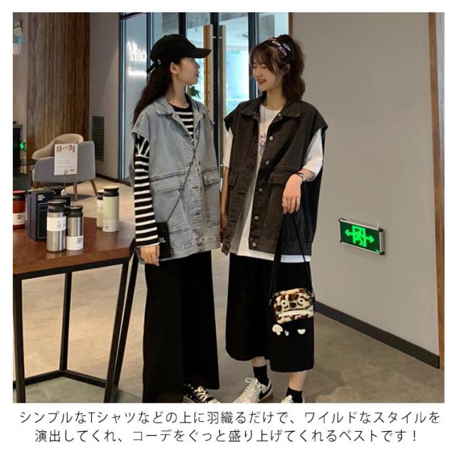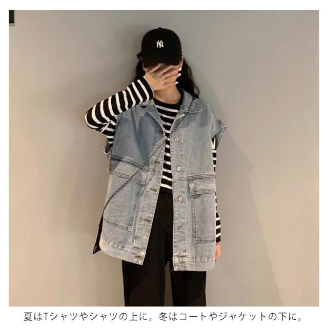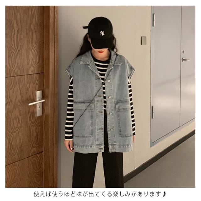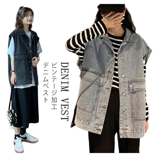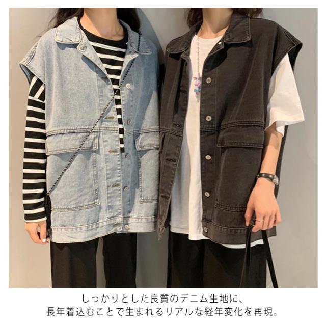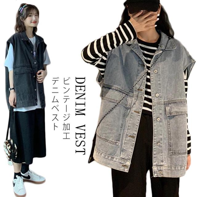 ビンテージ加工 デニムベスト レディース ベスト ショート丈 デニム ベスト Gジャン デニムジャケット ノースリーブ ジージャン おしゃれ
