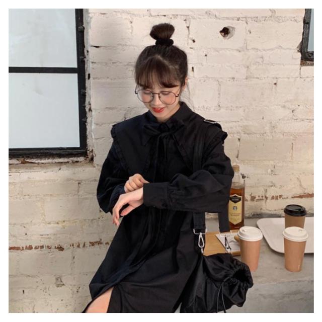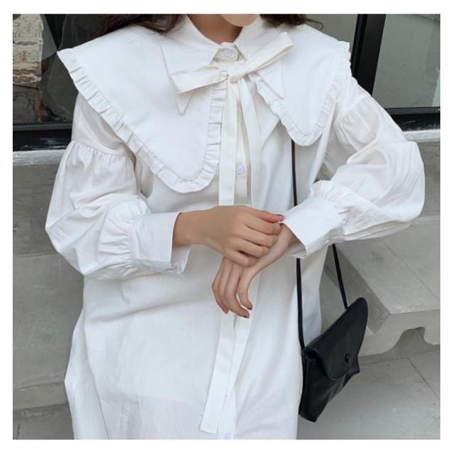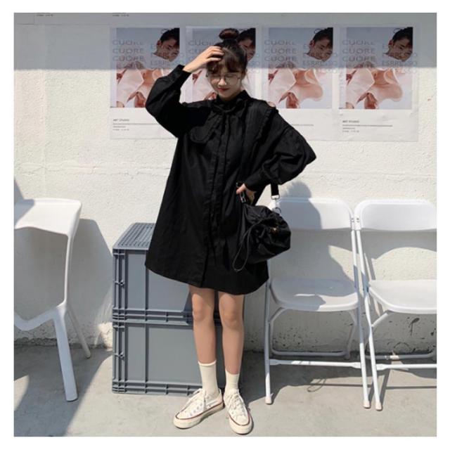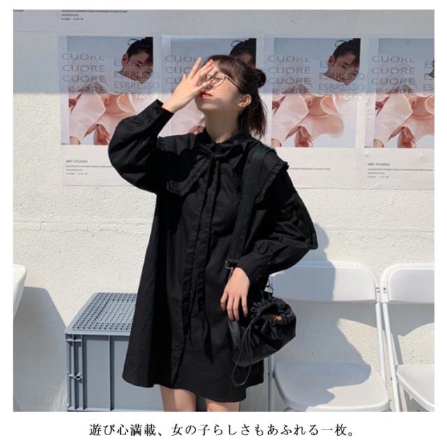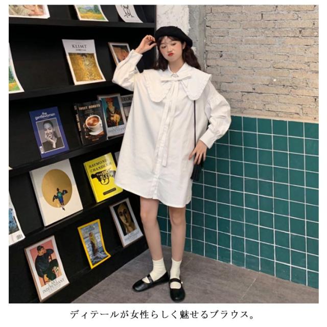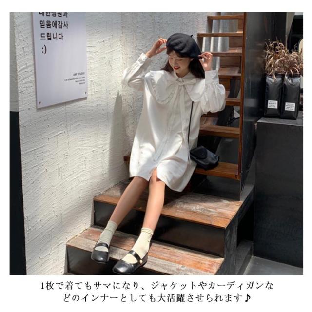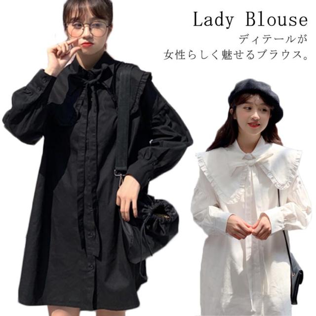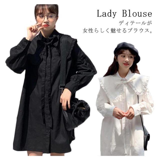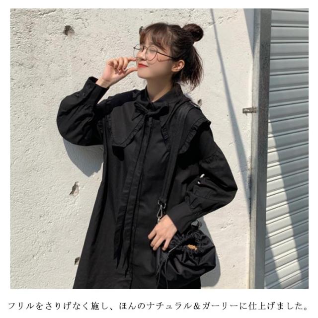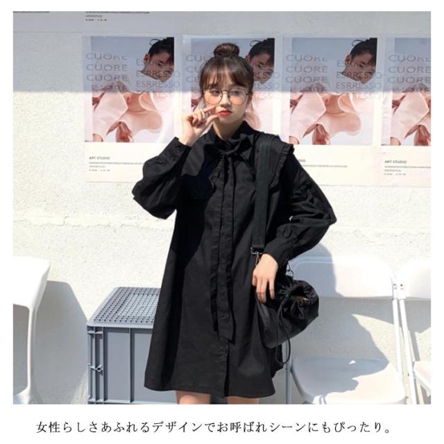 ロング丈 ブラウス ワンピース レディース シャツワンピース 長袖 ブラウス フリルブラウス フェミニン フリル シャツ トップス オフィス トップス ブラウス フェミニン 通勤 発表会