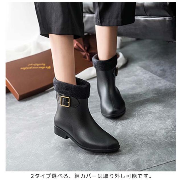 | 雨の日もおしゃれを楽しみたい方へ。 2タイプ選べる、綿カバーは取り外し可能です。 3センチヒールで美脚効果抜群。 デザイン性にも機能性にも優れたレインブーツ。 | |