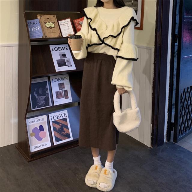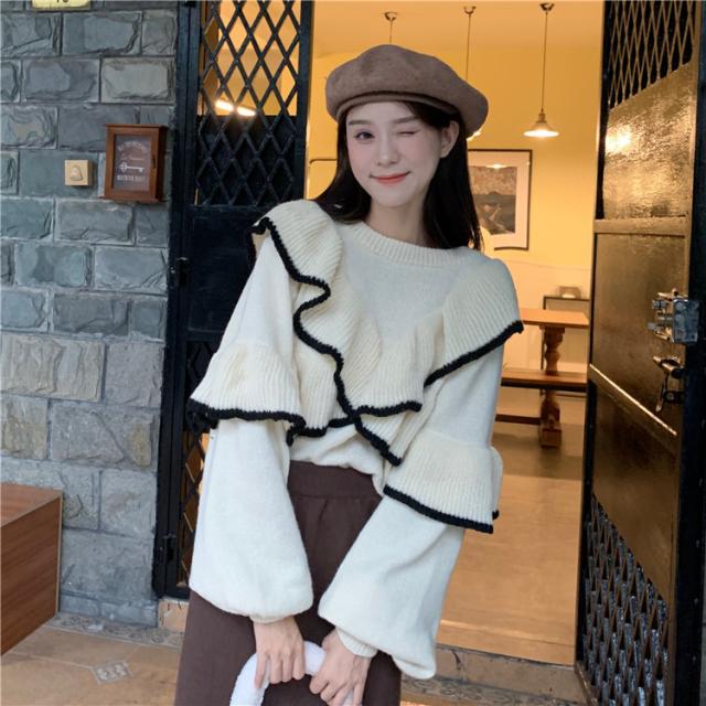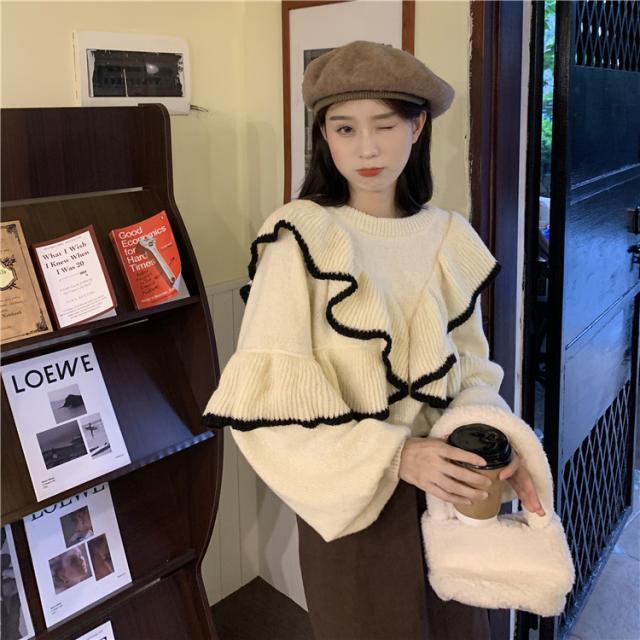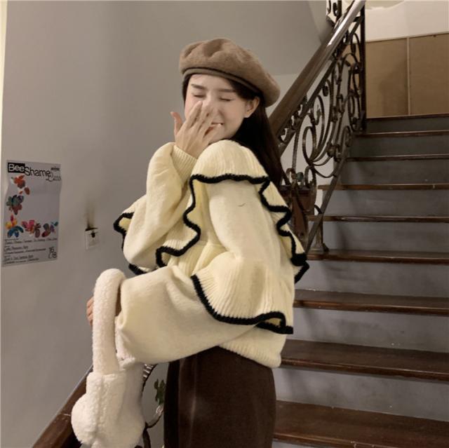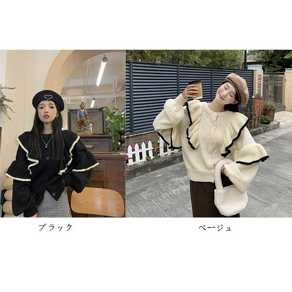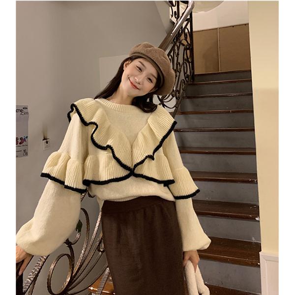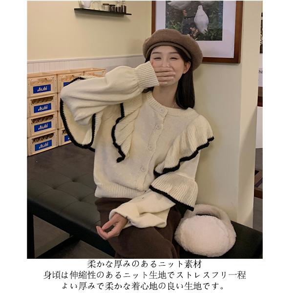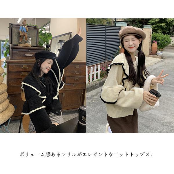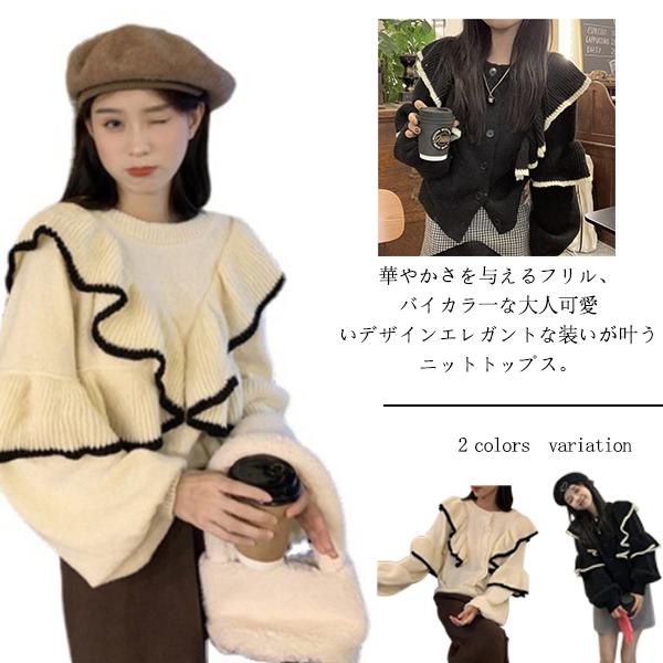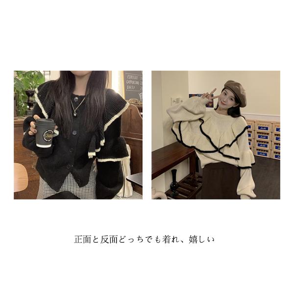 トップス ニット フリル リブ セーター レディース ニットプルオーバー フェミニン ドルマンスリーブ 秋 冬 長袖 無地 ウール 大きいサイズ リバーシブル