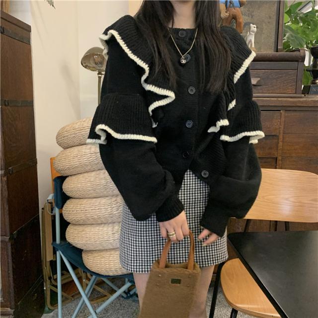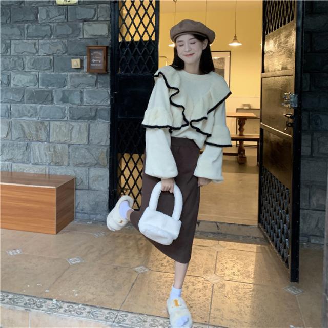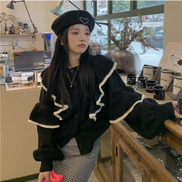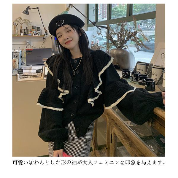 | ボリュ一ム感あるフリルがエレガントな二ットトッブス。 華やかさを与えるフリル、バイカラ一な大人可愛いデザインエレガントな装いが叶うニットトップス。 可愛いぽわんとした形の袖が大人フェミニンな印象を与えます。 柔かな厚みのあるニット素材身頃は伸縮性のあるニット生地でストレスフリ一程よい厚みで柔かな着心地の良い生地です。 正面と反面どっちでも着れ、嬉しい♪ | |