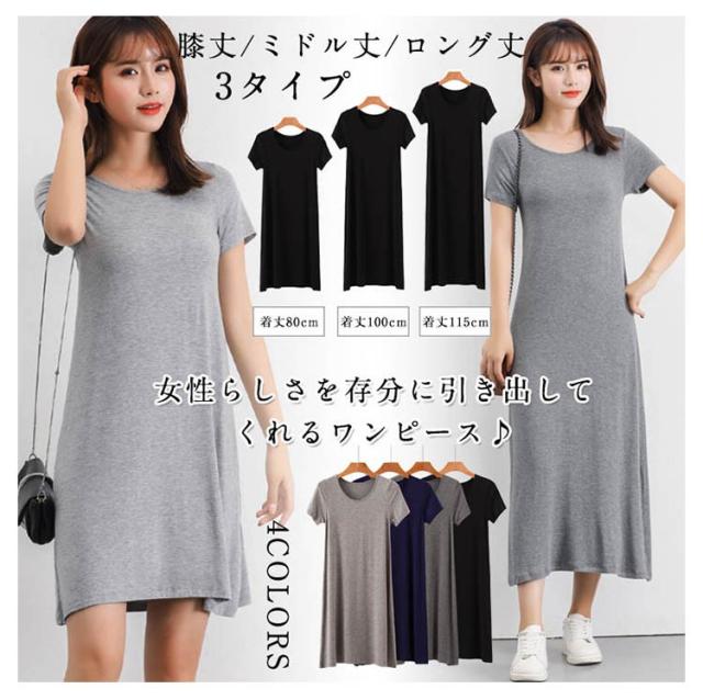 ワンピース ルームウェア レディース 半袖 ひざ丈/ミドル丈/ロング丈