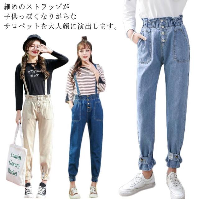 サロペットパンツ オールインワン オーバーオール レディース ジョガーパンツ デニムパンツ 体形カバー ゆるかわ オーバーオール 通勤 通学 かわいい 新作