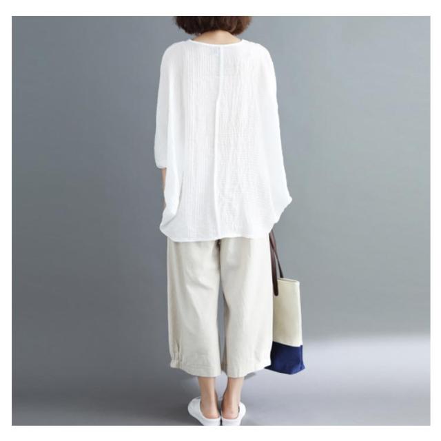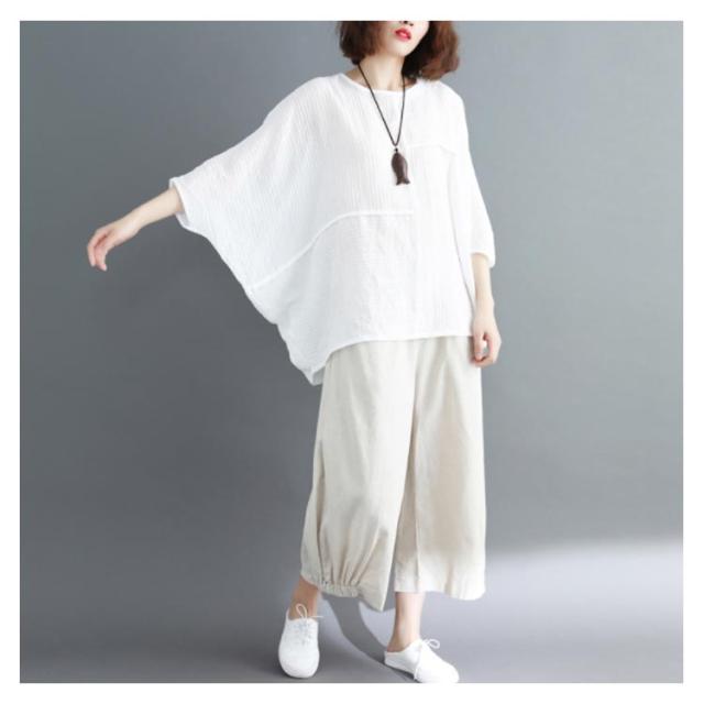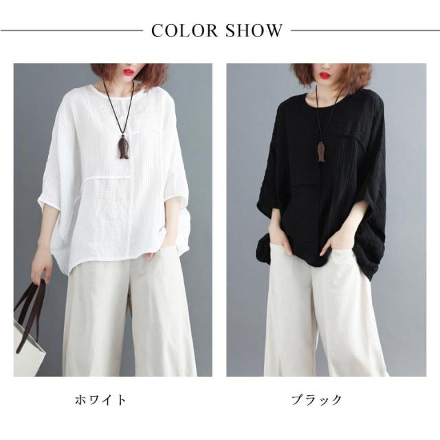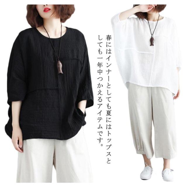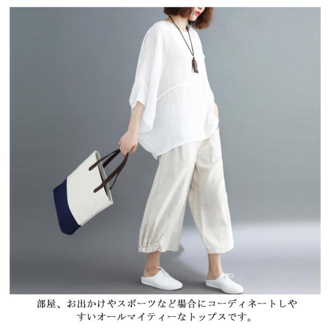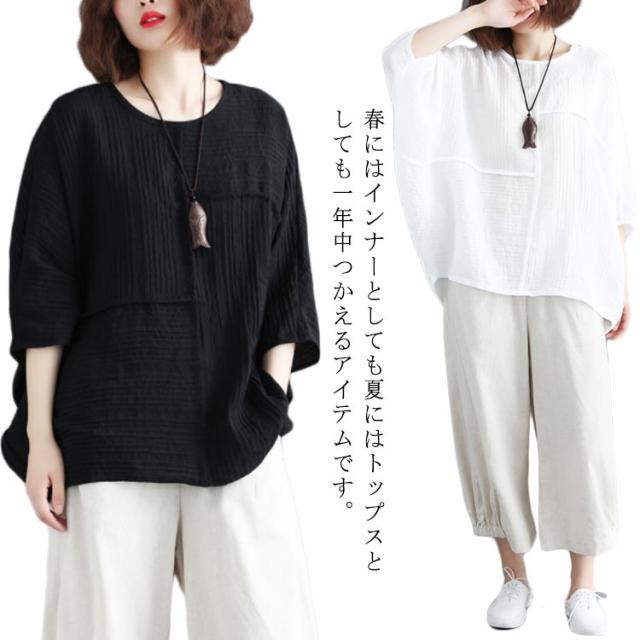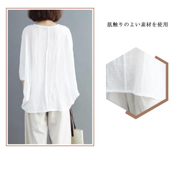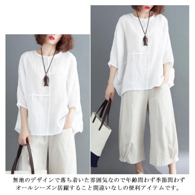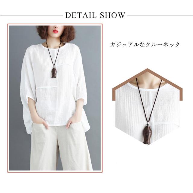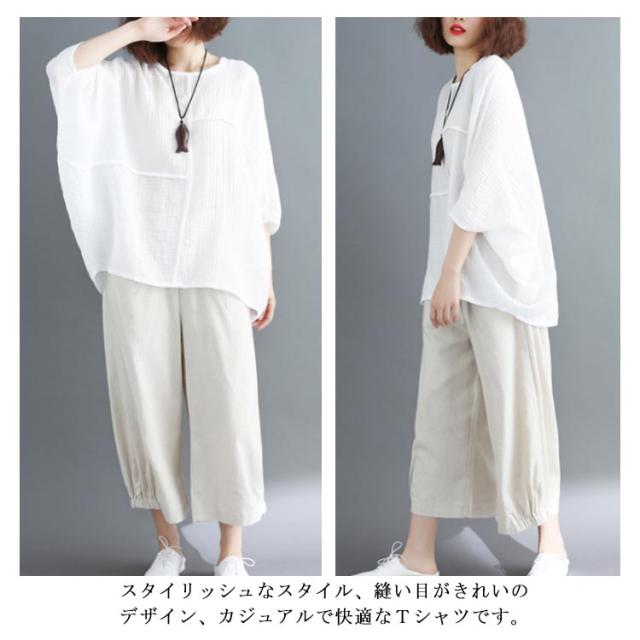 トップス レディース Tシャツ クルーネック ドルマンスリーブ 7文袖 ゆったり 無地 カジュアル 夏 フェミニン エレガント 新作