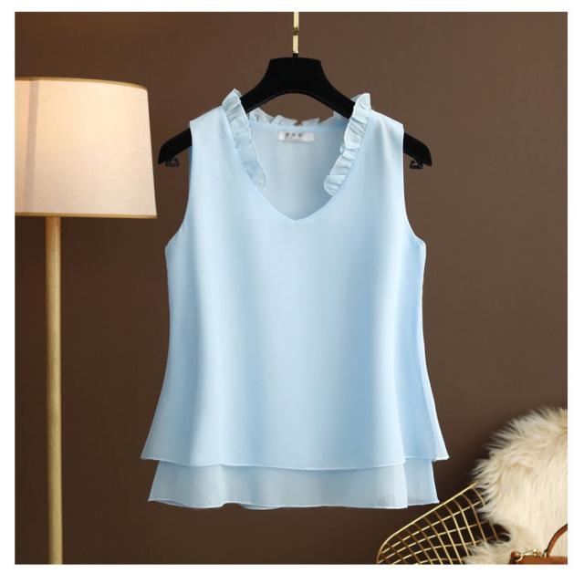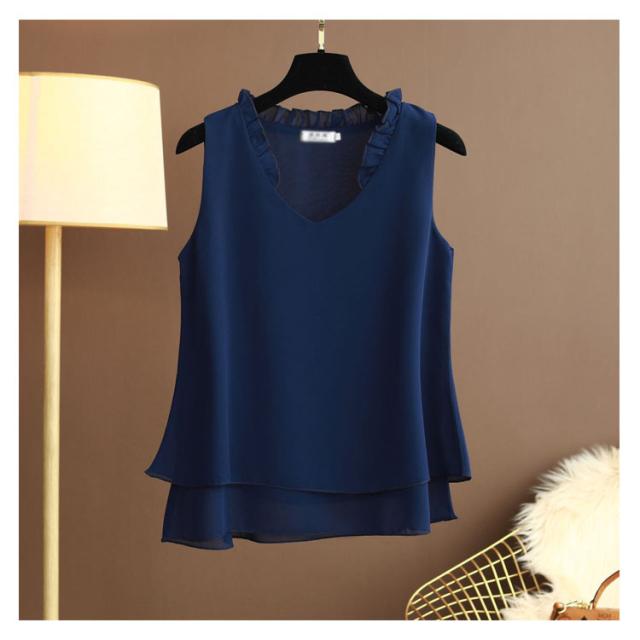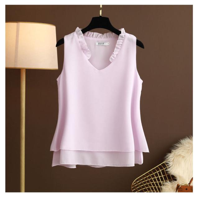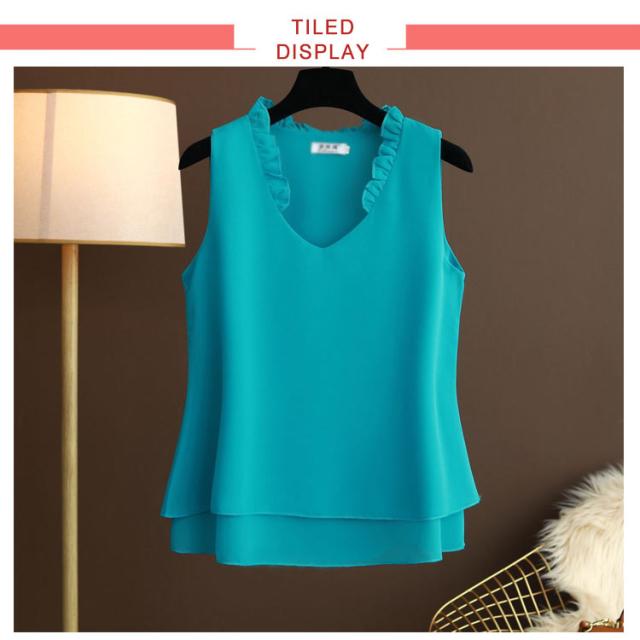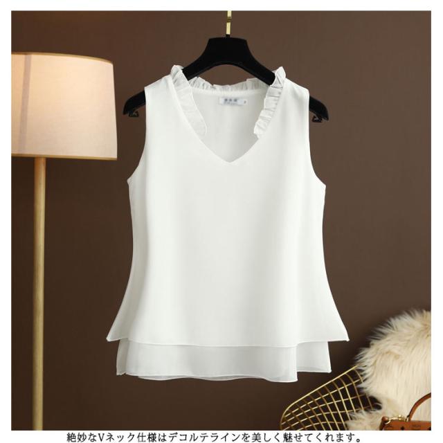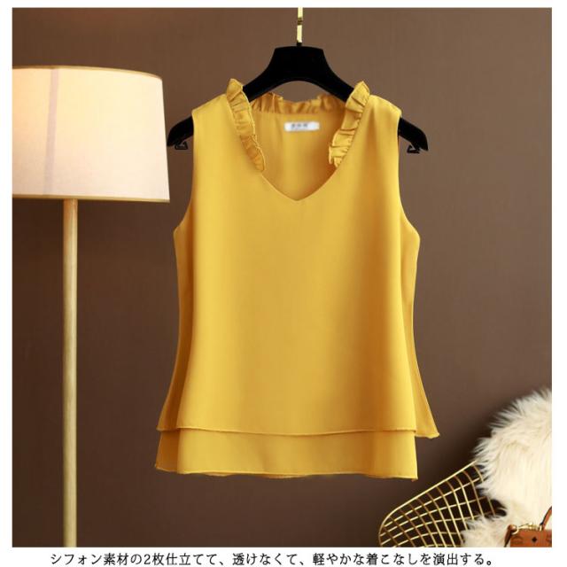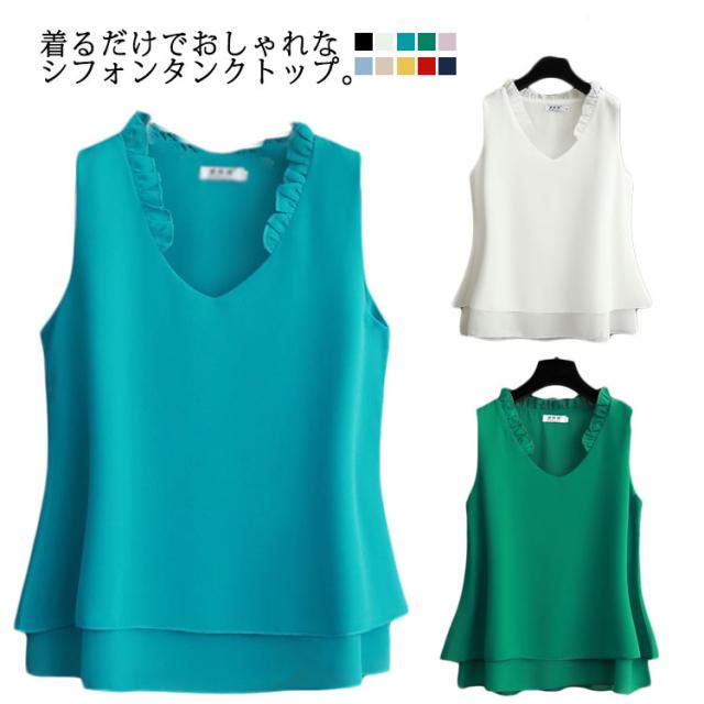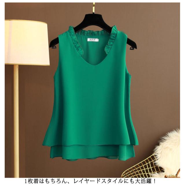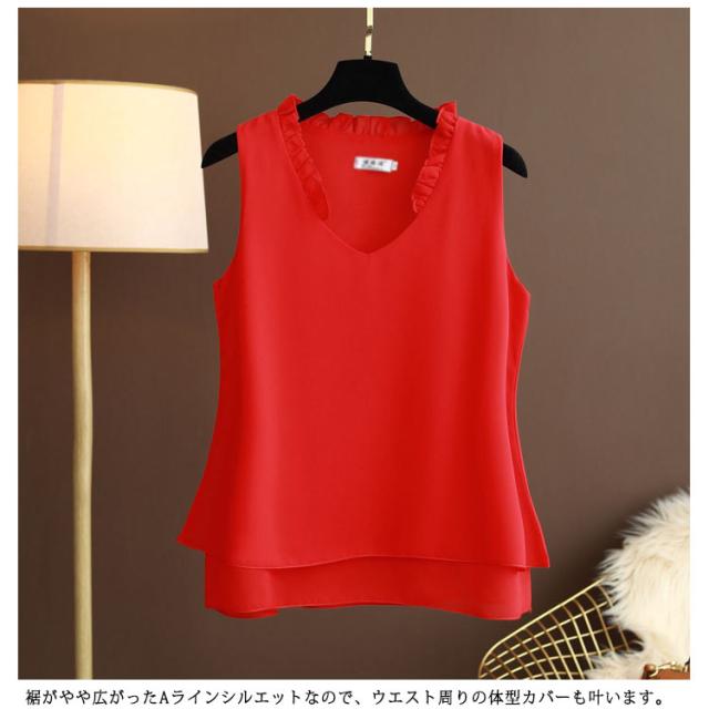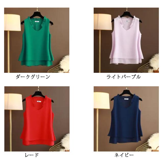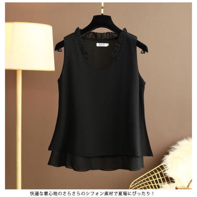 シフォン タンクトップ タンクトップ 大きいサイズ シフォン レディース ノースリーブ シフォンブラウス フリル トップス キャミソール キャミ ゆったり 2枚シフォン重ね 夏服 夏物 シンプル かわいい Vネック