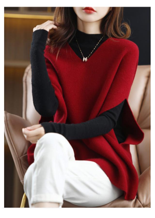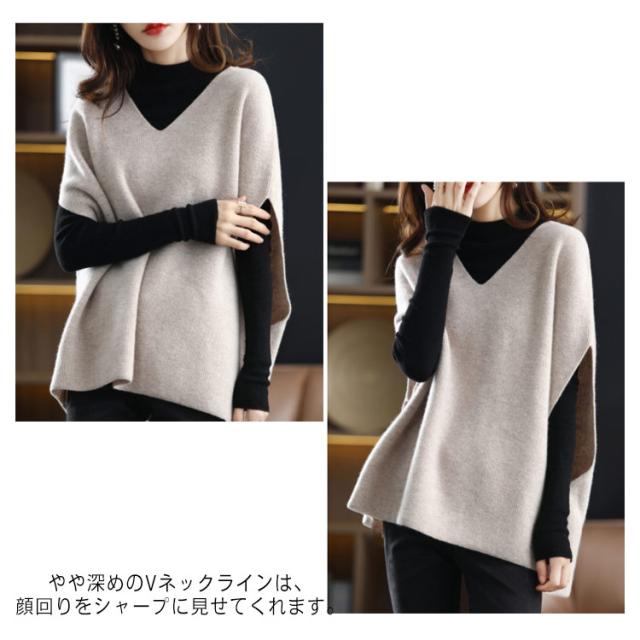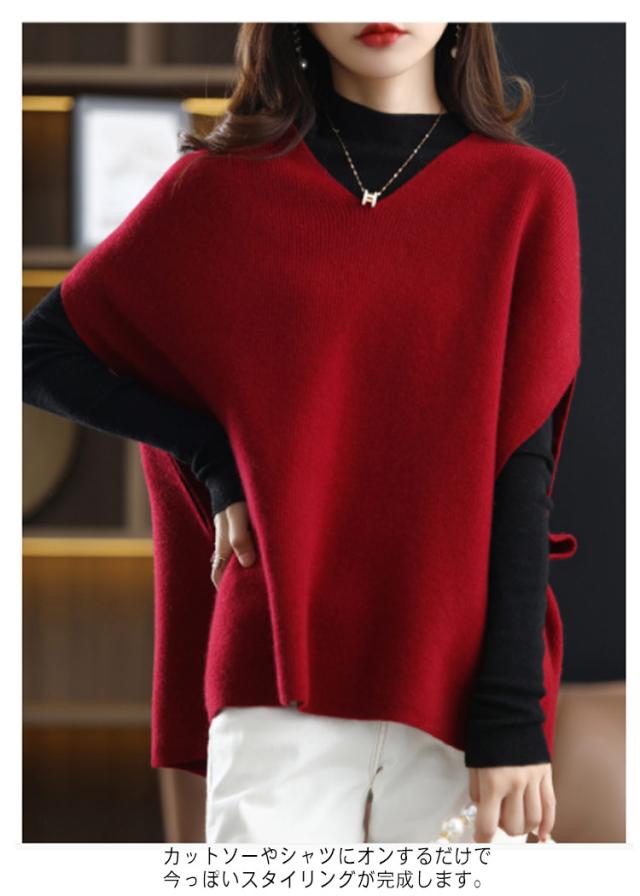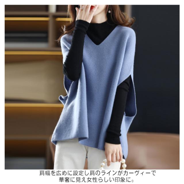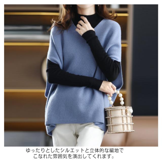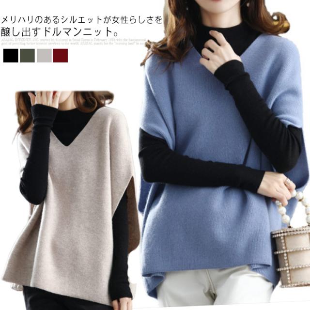 ドルマンニット セーター ニット ノースリーブ ニットベスト Vネック レイヤード 重ね着 ゆるっとお洒落 ニットトップス ニットベスト ニットチョッキ チュニック セーター ケーブルニット トップス 体型