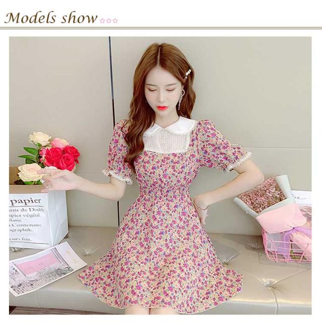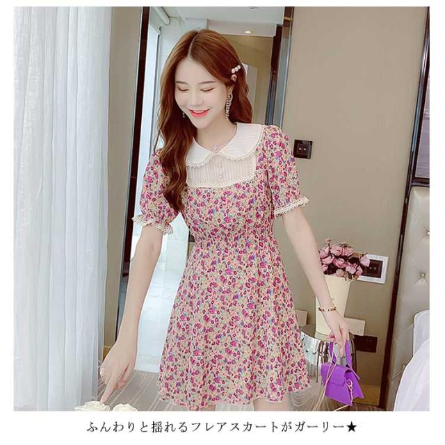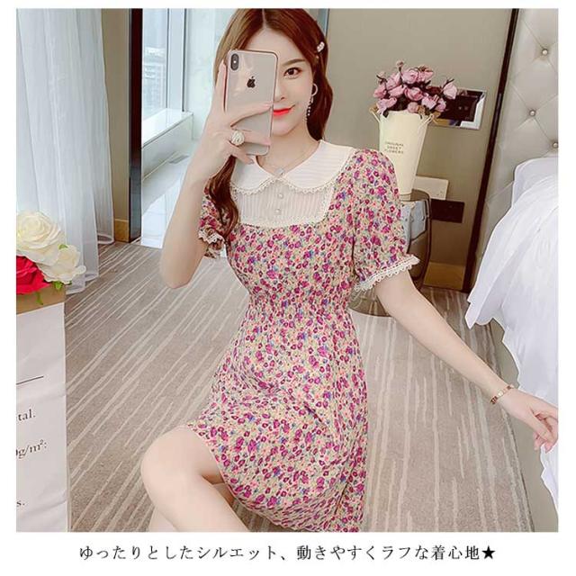 ワンピース レディース 膝丈ワンピース ミディアム丈ワンピース 小花柄 Aラインワンピース 半袖 花柄ワンピース 森ガール系 シャツワンピース かわいい お洒落 ルーズ ゆったり お出かけ シンプル おしゃれ カジュアル