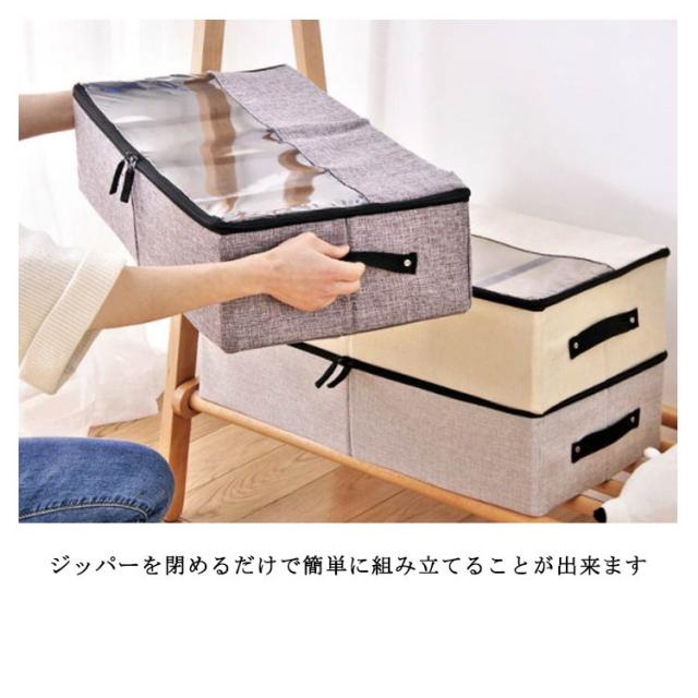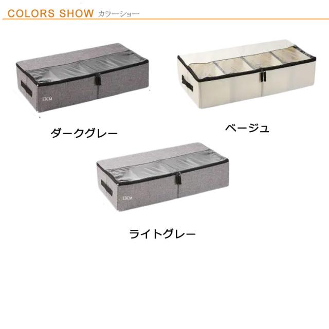 | 通気性もよく湿気がこもる心配しない収納ボックス 透明窓が付いているので何を収納したか一目瞭然 ベッドの下、家具の隙間、タンスの上など色々な場所に置くことができます ジッパーを閉めるだけで簡単に組み立てることが出来ます 折りたたみ式で、コンパクトに収納できます 靴箱、毛布かご、衣類収納容器、おもちゃ収納箱として使えます | |