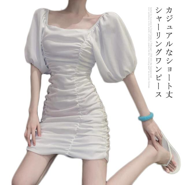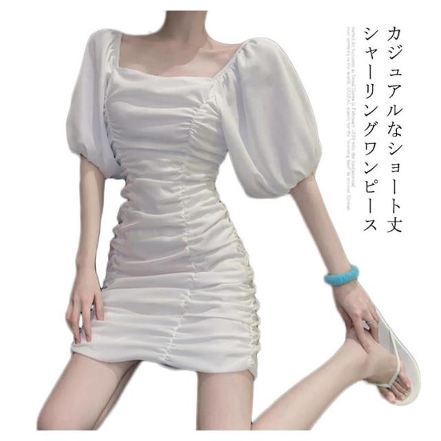 ショートワンピース レディース ワンピース シャーリングワンピース ショート丈ワンピース 長袖ワンピース ドロスト シンプル 優雅 エレガント 大人 お洒落 キレイめ 夏新作