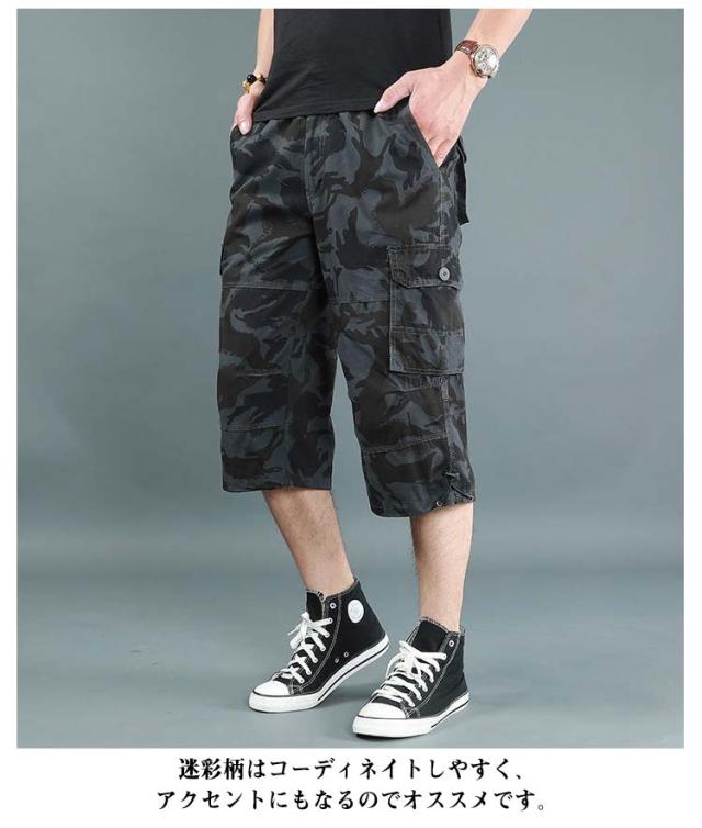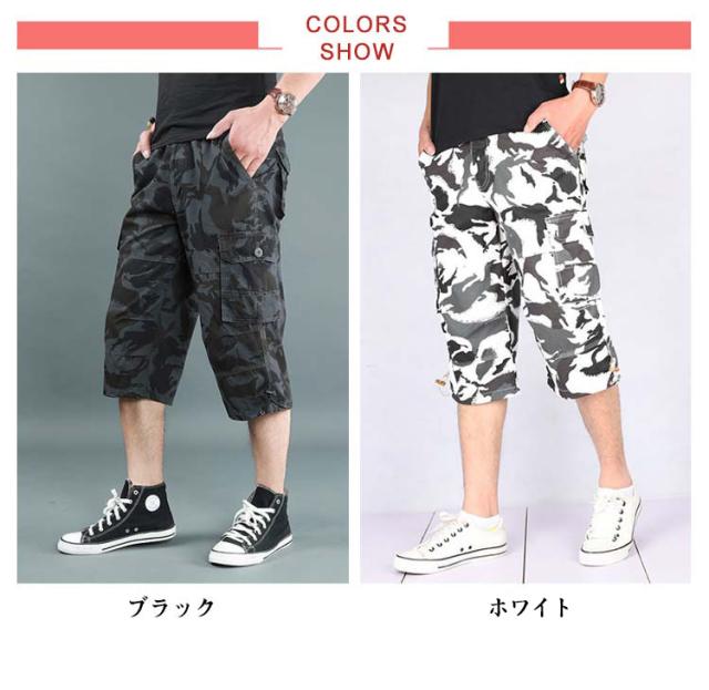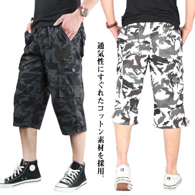 作業着 大きいサイズ メンズ 迷彩カーゴパンツ 五分丈 カーゴパンツ ショートパンツ ハーフパンツ ポケット付き ボトムス カジュアル おしゃれ 七分丈