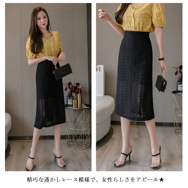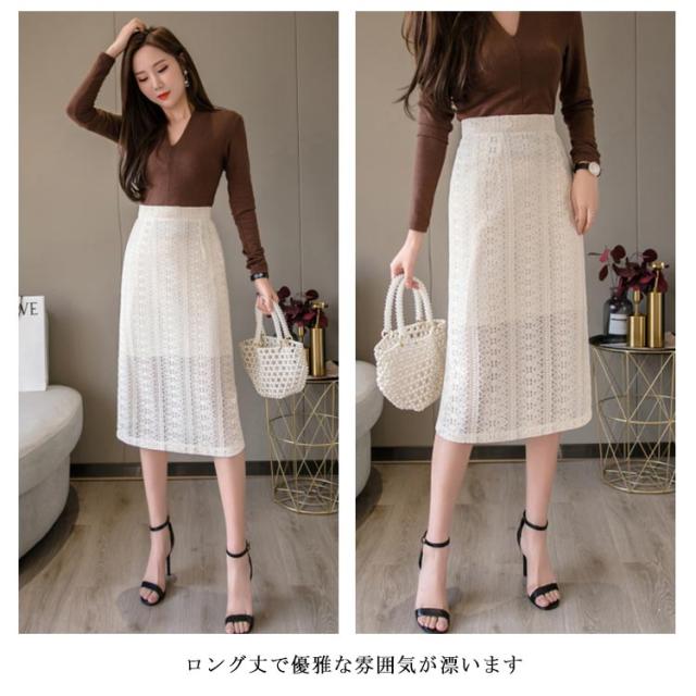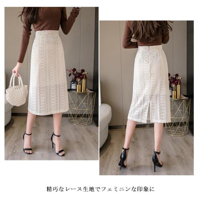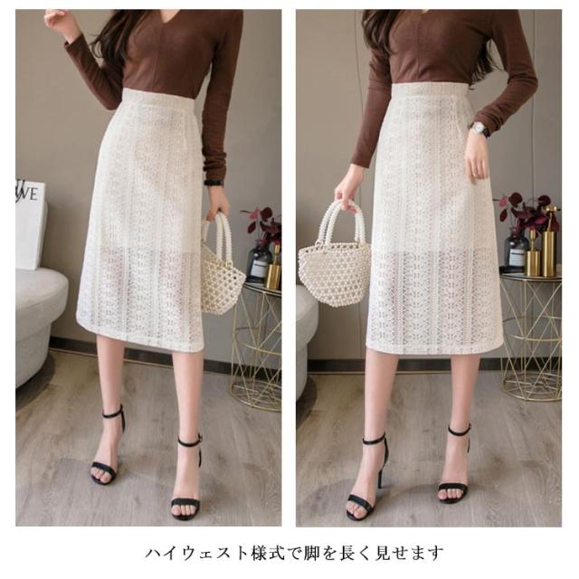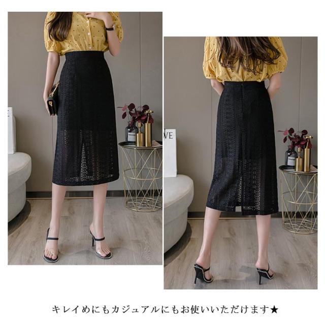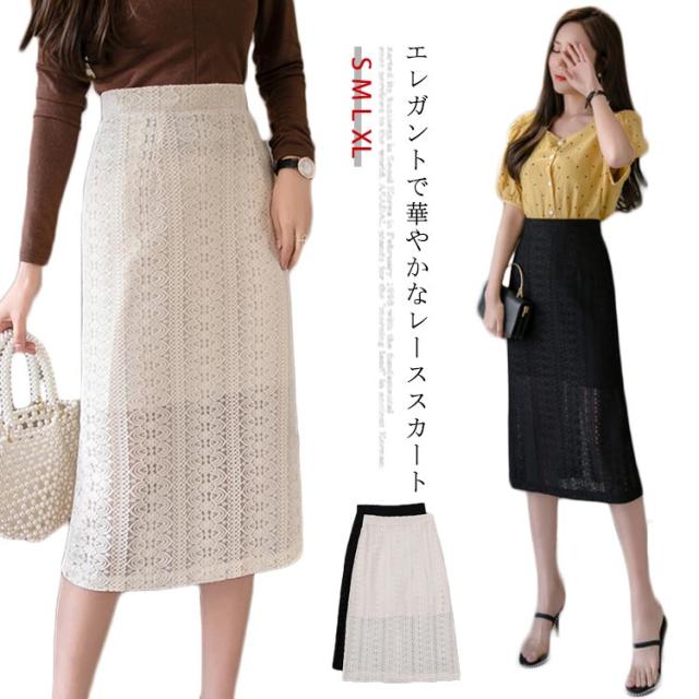 総レーススカート レディース スカート ミモレスカート ロングスカート 総レース 透かしレース レース 裏地付き ストレート ハイウェスト 優雅 エレガント 華やか フェミニン お洒落 キレイめ ボトムス 夏新作