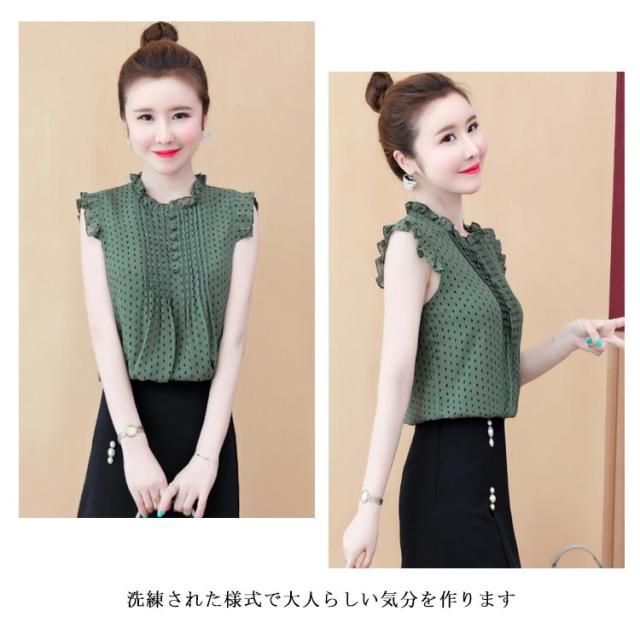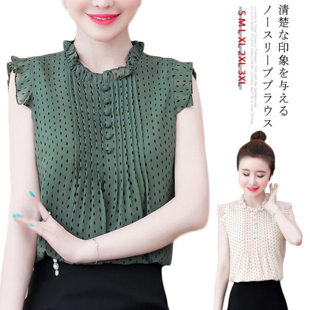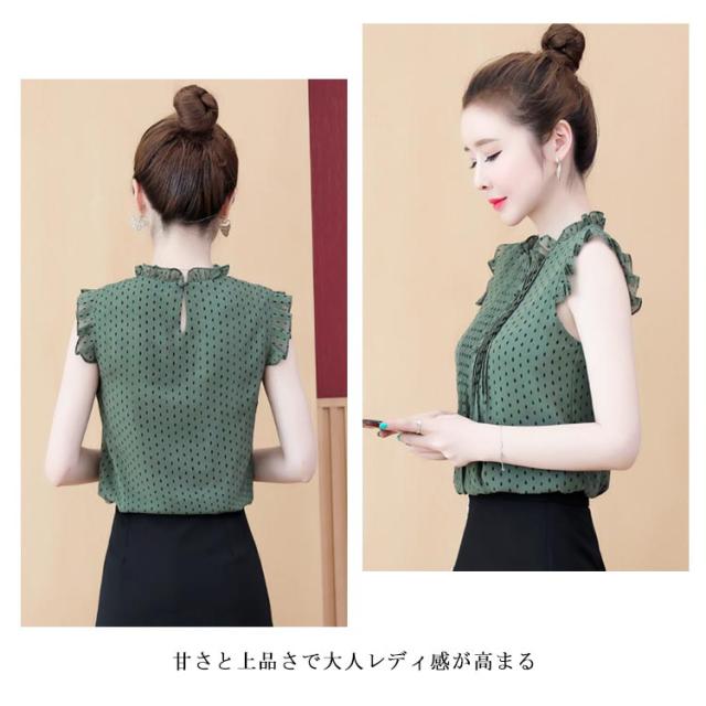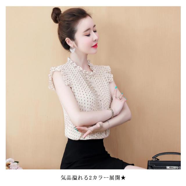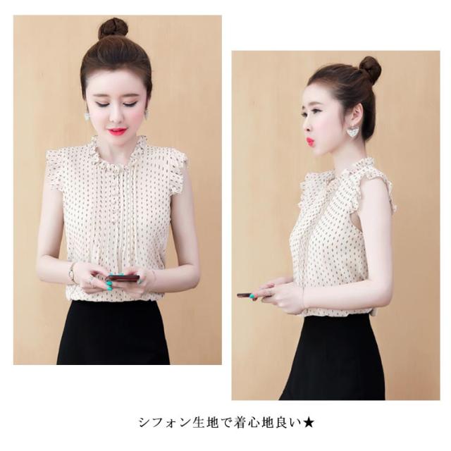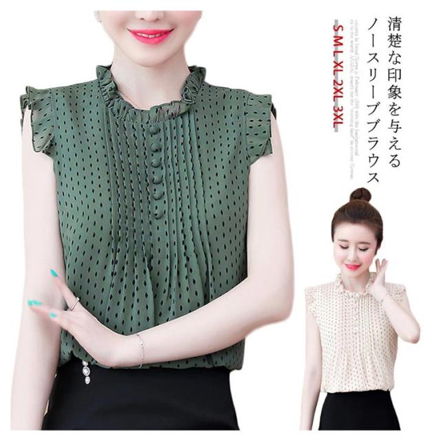 シフォンブラウス レディース シャツブラウス フリルブラウス ノースリーブブラウス 無地ブラウス ノースリーブ フリル プルオーバー トップス スタンドカラー 花柄 スリム 着痩せ 清楚 さっぱり 大人 エレガント トップス 春夏 2020夏新作