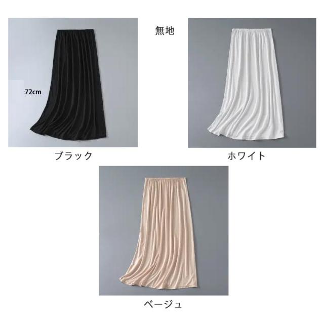 | 2タイプから選べる!ボトムスインナーに大活躍間違いナシのペチコート。 裾がレースになっているから見えても可愛く、長さやデザインのアレンジにもぴったり!無地タイプもあります。 ウエストは良く伸びるゴム仕様なので 苦しさもなく、楽ちんにご着用頂けます。 伸縮性に富んだソフトな生地で、着心地が抜群。薄手でかさばらず、一枚プラスすれば、更に品の良いスタイルに。 カラーはお手持ちのアイテムに合わせやすいブラック、ホワイト、ベージュの3カラーをご用意しました。 | |