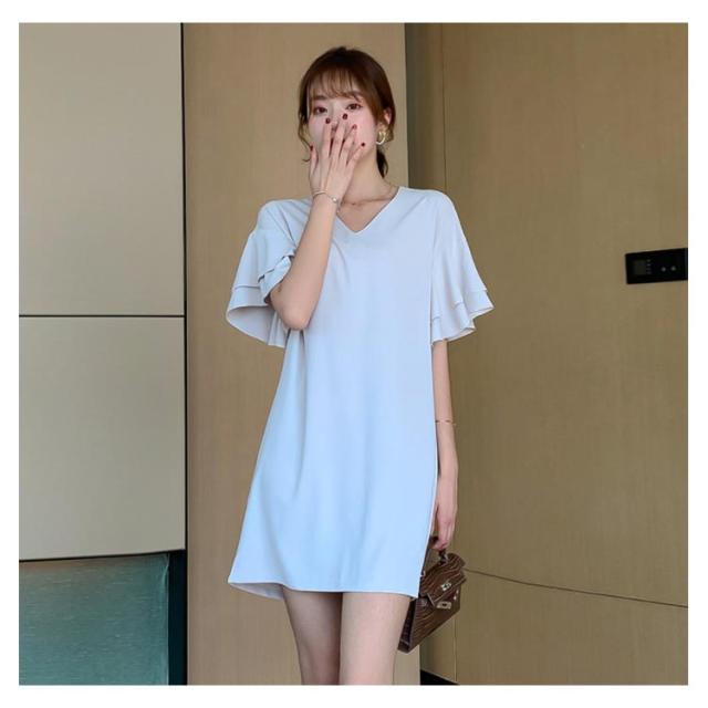 ワンピース レディース Tシャツワンピース 膝丈ワンピース 半袖ワンピース ゆるワンピース ドルマン Vネック ルーズ 無地 シンプル ゆったり ゆるシルエット トレンド オシャレ エレガント 上品 リゾート 夏新作