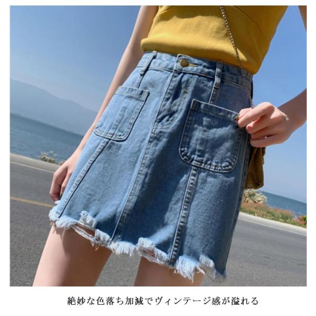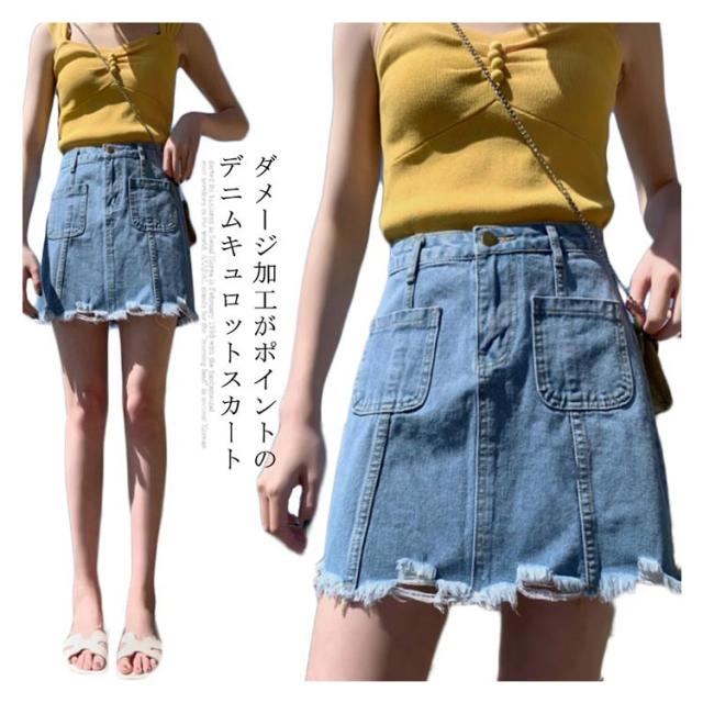 デニム レディース スカート キュロット スカート デニムスカート デニムキュロット ミニスカート ダメージ加工 クラッシュデニム 色落ち ウォッシュ加工 ショート丈 ハイウエスト ボトムス お洒落 カジュアル ヴィンテージ 夏新作