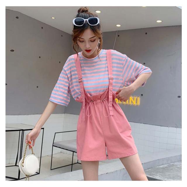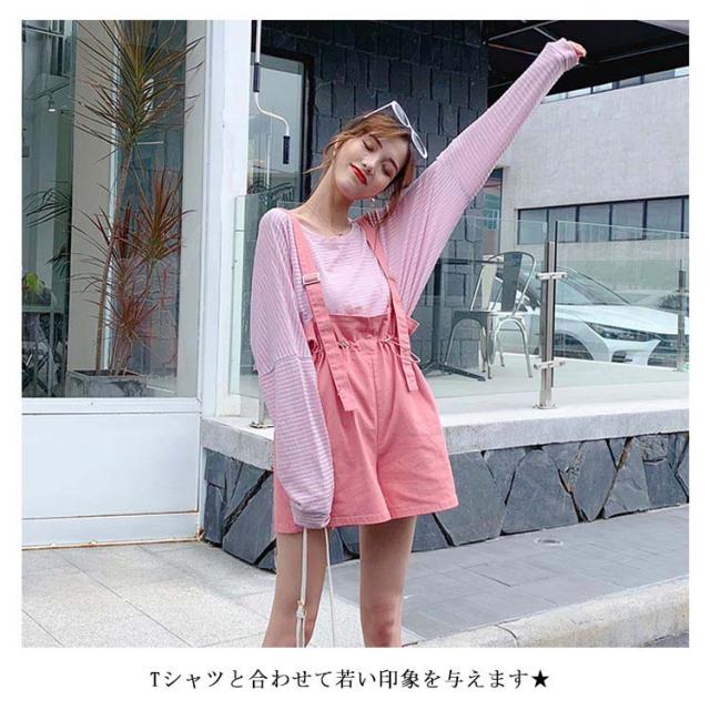 | カジュアルながらもキュートなショート丈サロペット ショート丈でこれから季節にぴったり ドロスト付きで体にフィットします ワイドパンツ様式で脚を細く見せます 綺麗な3カラー展開 | |