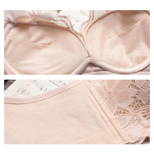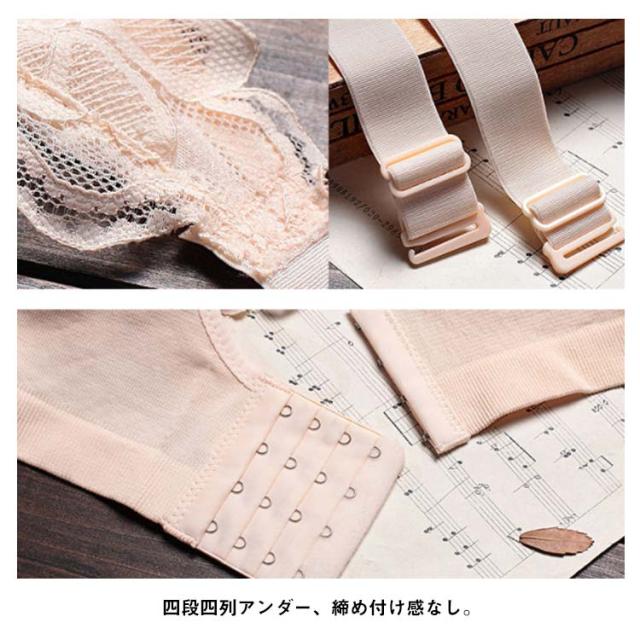 | ブラジャー胸元のレースが気品を引き立てます。 ノンワイヤーで着け心地ラクラク♪ 四段四列アンダー、締め付け感なし。 通気性がよく乾きやすい。 | |