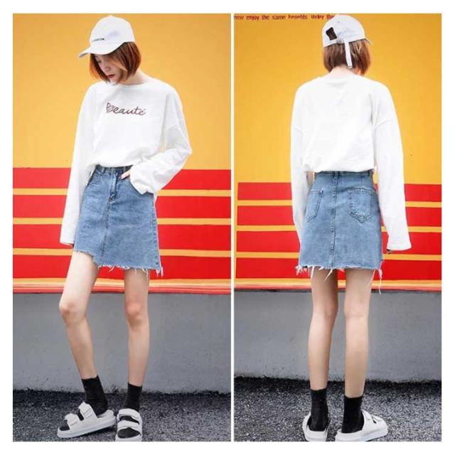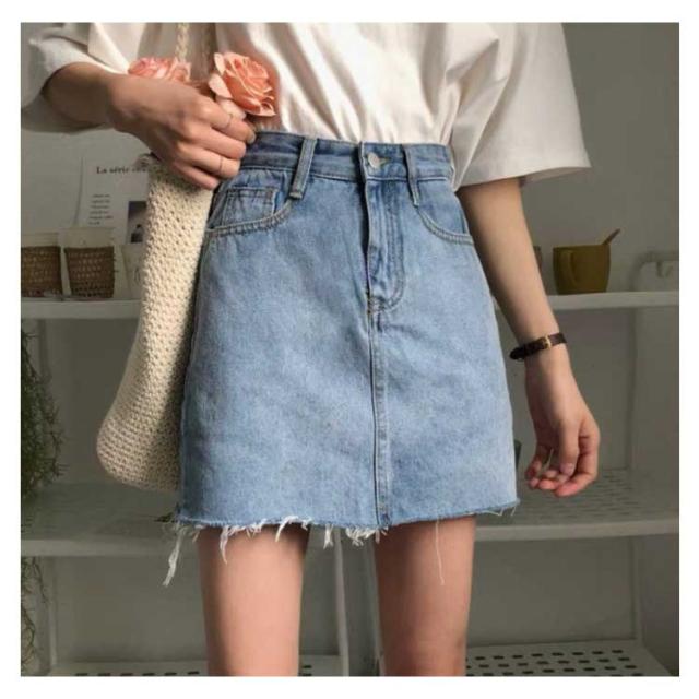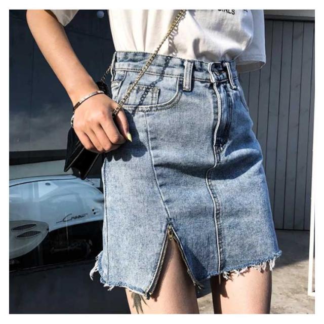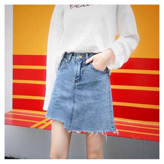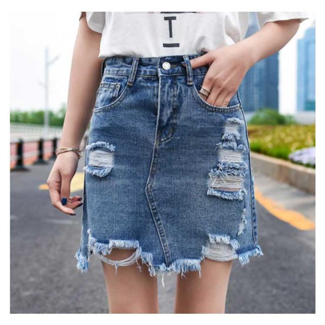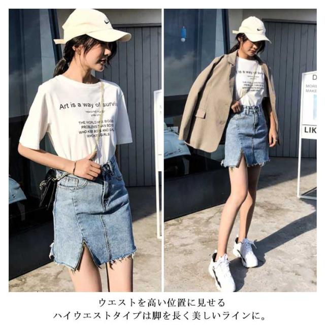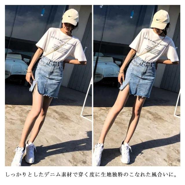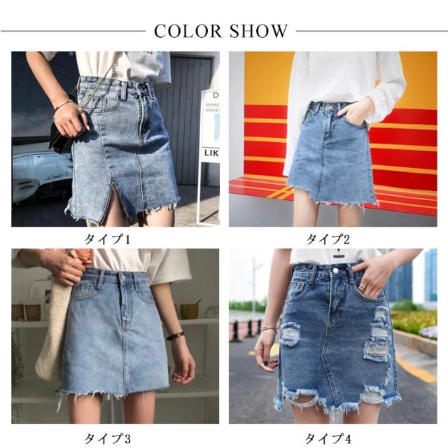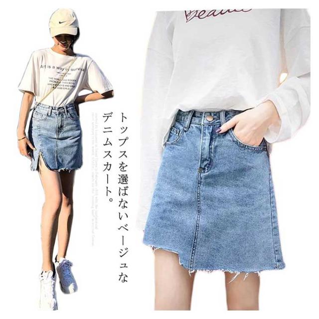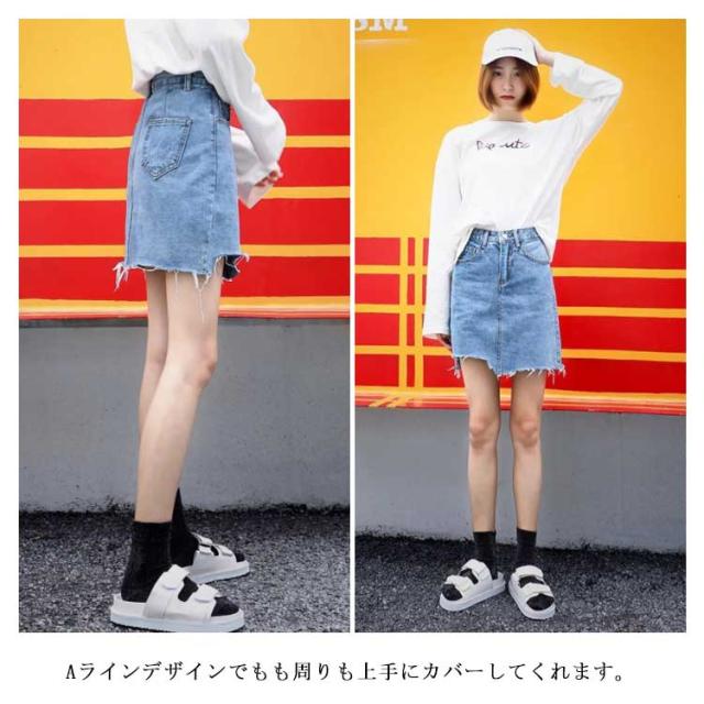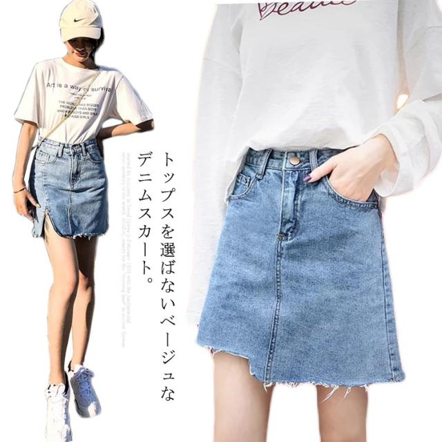 デニムスカート 膝上丈 スカート ショート丈 Aライン ボトムス 大きいサイズ レディース おしゃれ 着痩せ ダメージ加工 不規則 ハイウエスト 春夏 カジュアル