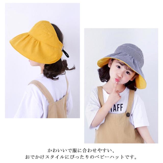 ベビー 帽子 キッズ ハット女の子 かわいいリボン つば広い UVcut 日よけ 紫外線対策紐付き サファリハット 変形ににくい 折りたたみ可キッズ帽子 可愛い 新作
