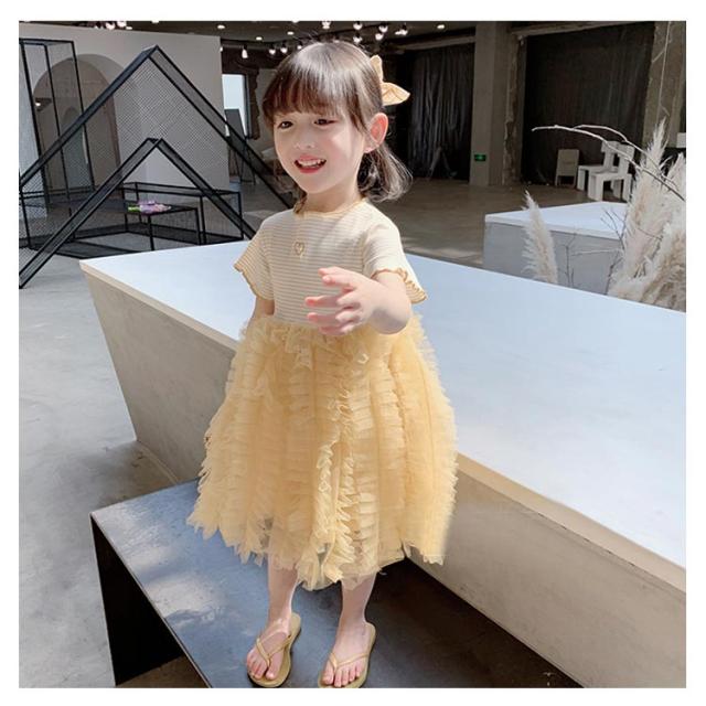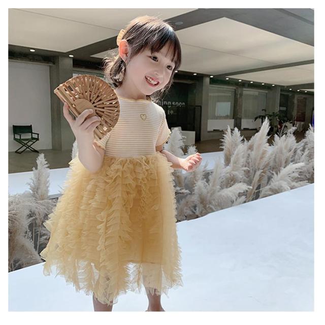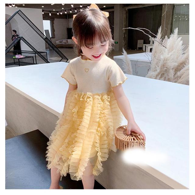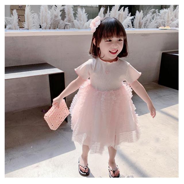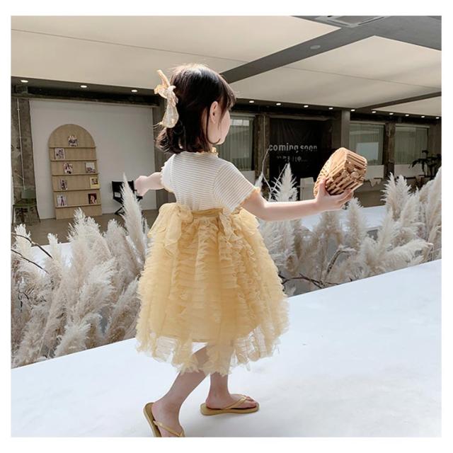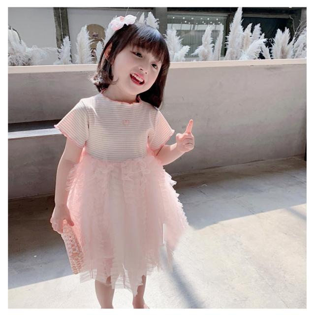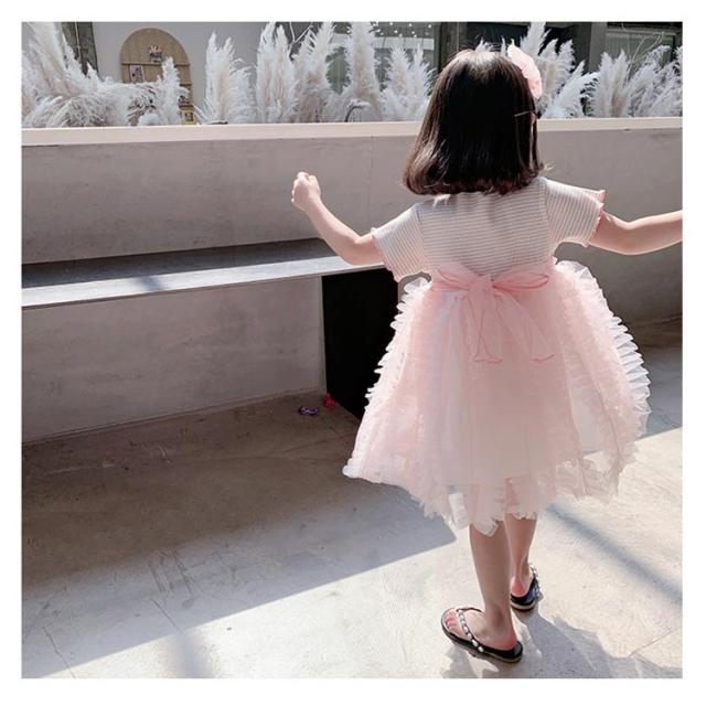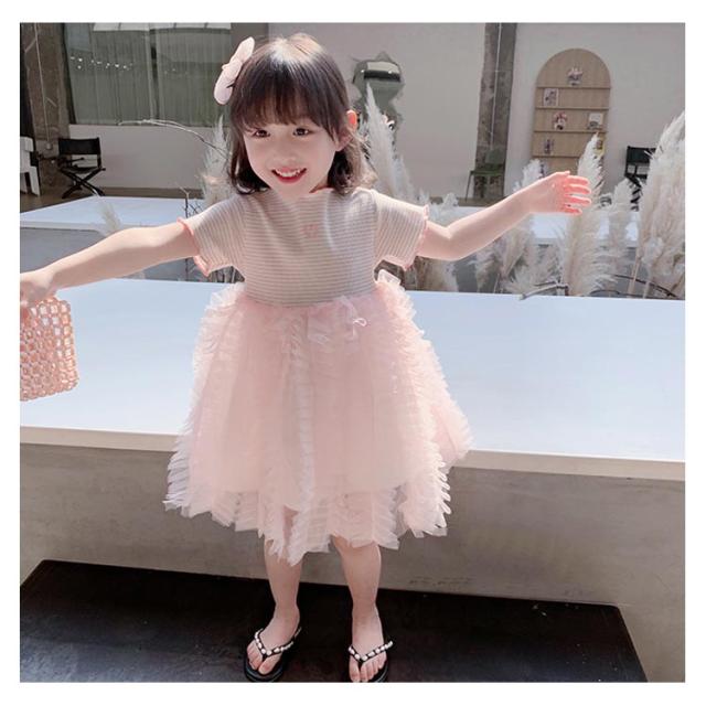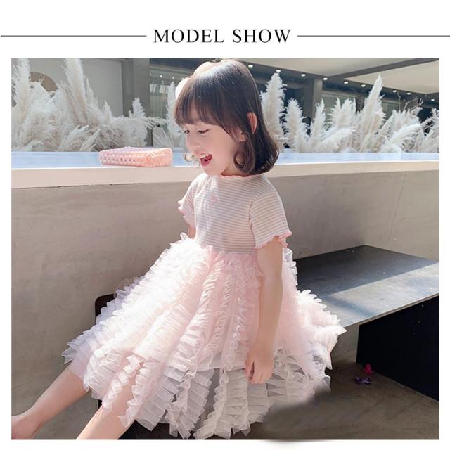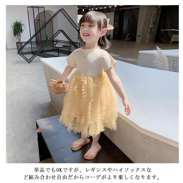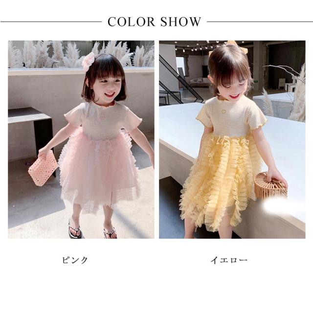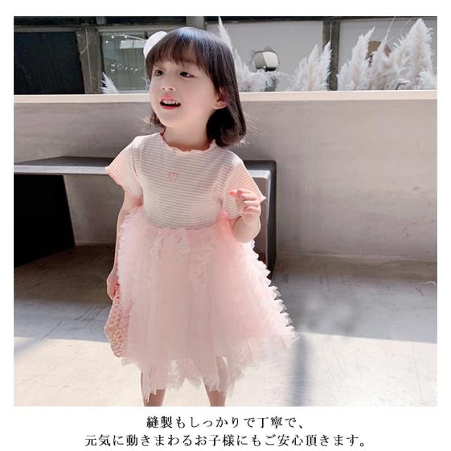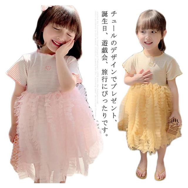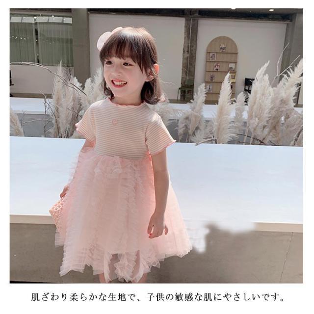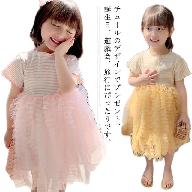 子供ワンピース ドキングワンピース チュールスカート 女の子 半袖 ガールズ 子供ドレス ベビー服 プリンセス ふんわり かわいい おしゃれ 誕生日 可愛い 新作