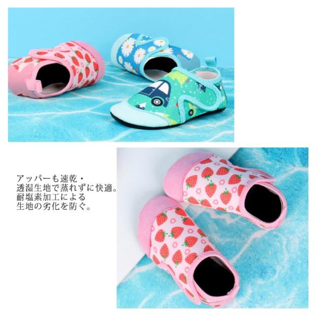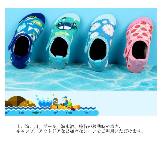 マリンシューズ キッズ 子ども 子供 ウォーターシューズ 水陸両用 アクアシューズ ビーチサンダル 女の子 男の子 アウトドア プール ビーチ 海水浴 岩場 ケガ防止 ラッシュガード 保護 靴 中敷き 快適 メッシュ 軽量 排水 水遊び用 ジュニア 小学生 花柄 いちご 車 魚