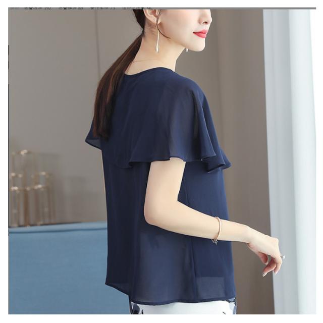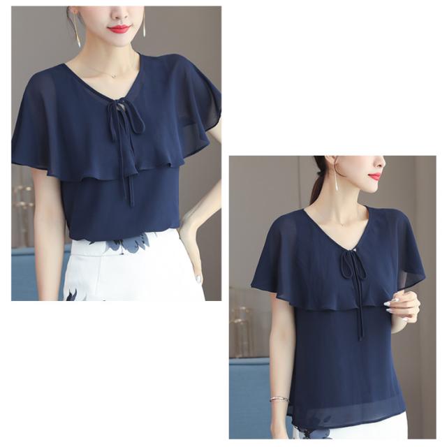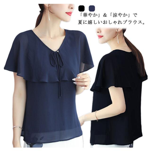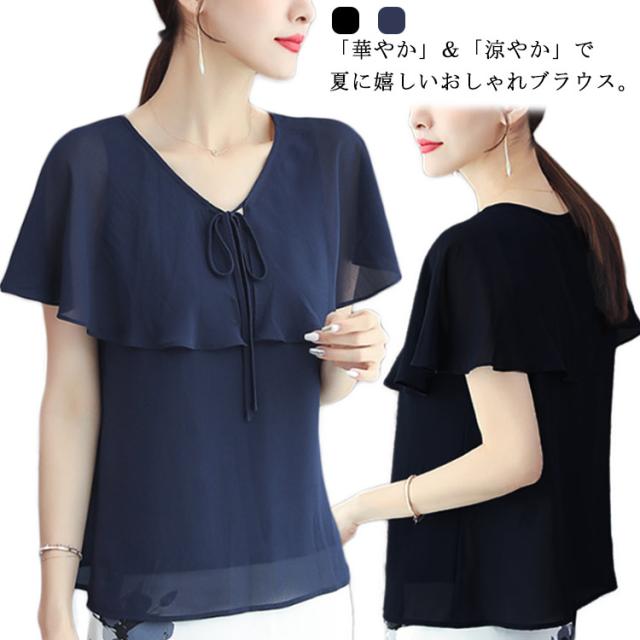 シフォン 袖フリル ブラウス レディース 夏 夏服 トップス 半袖 大人 オフィス フリル袖 可愛い 涼しい 体型カバー 結婚式 パーティー 二次会 トップス フォーマル 薄手 シースルー