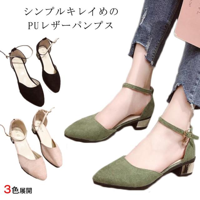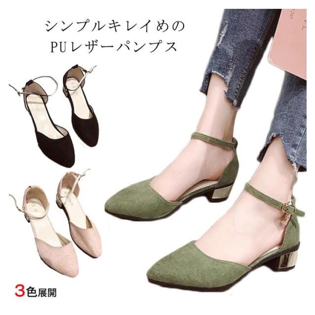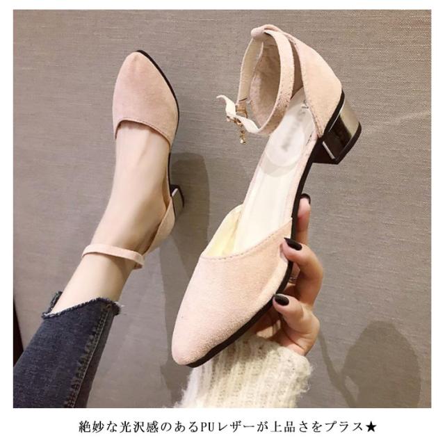 パンプス レディース レザーパンプス PUレザー スエード風 フェイクレザー チャンキーヒール 太ヒール ローヒール スクエアトゥ 光沢感 痛くない 歩きやすい ストラップ シューズ 靴 お洒落 キレイめ フェミニン エレガント 春新作